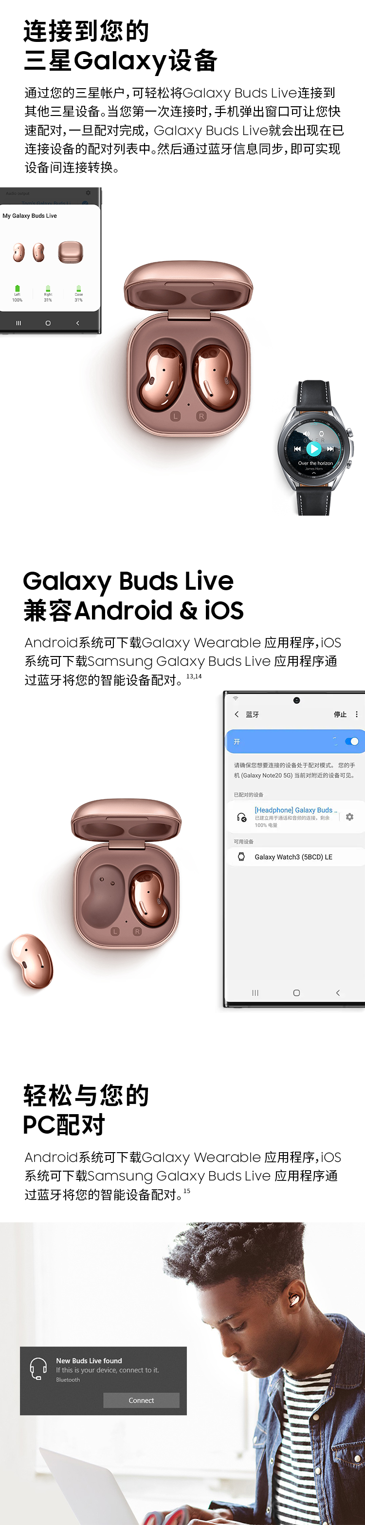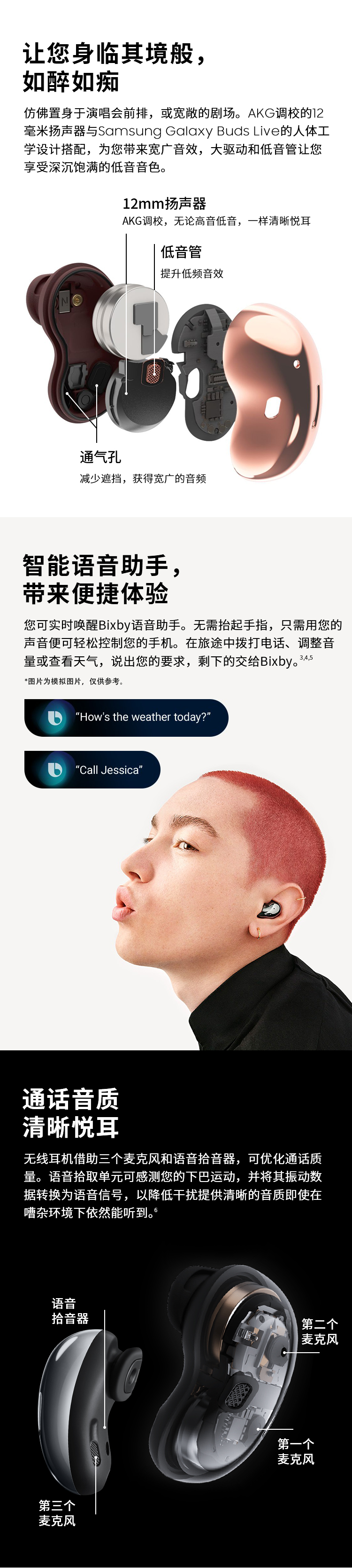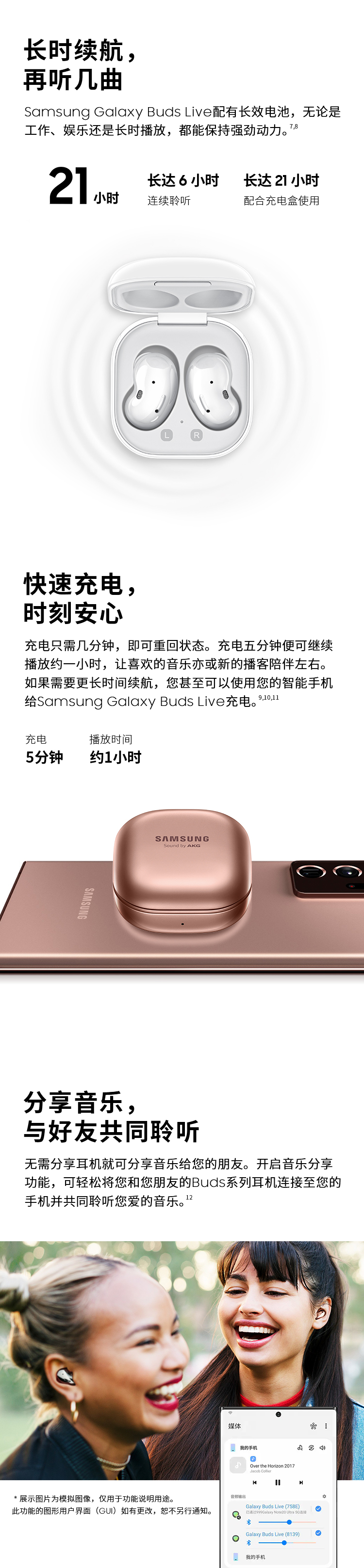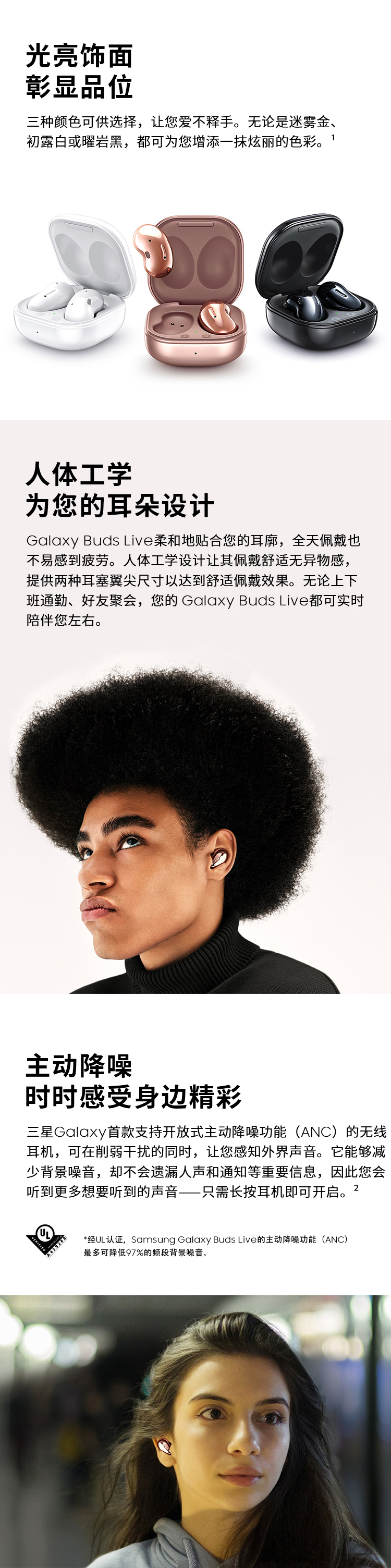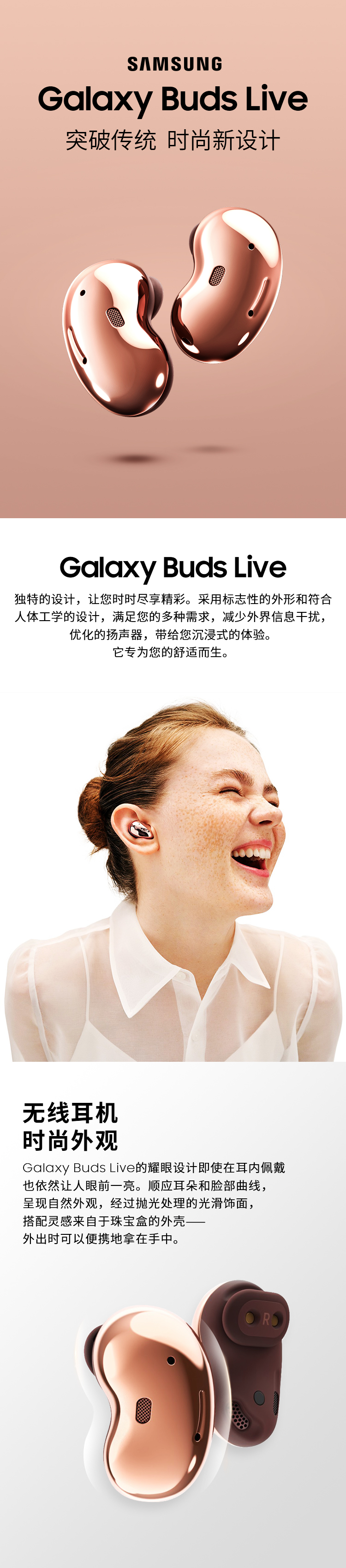 - 商品名称:三星(SAMSUNG)Galaxy Buds Live 开放式主动降噪无线蓝牙耳机 兼容苹果 支持无线充电 长效续航 初露白