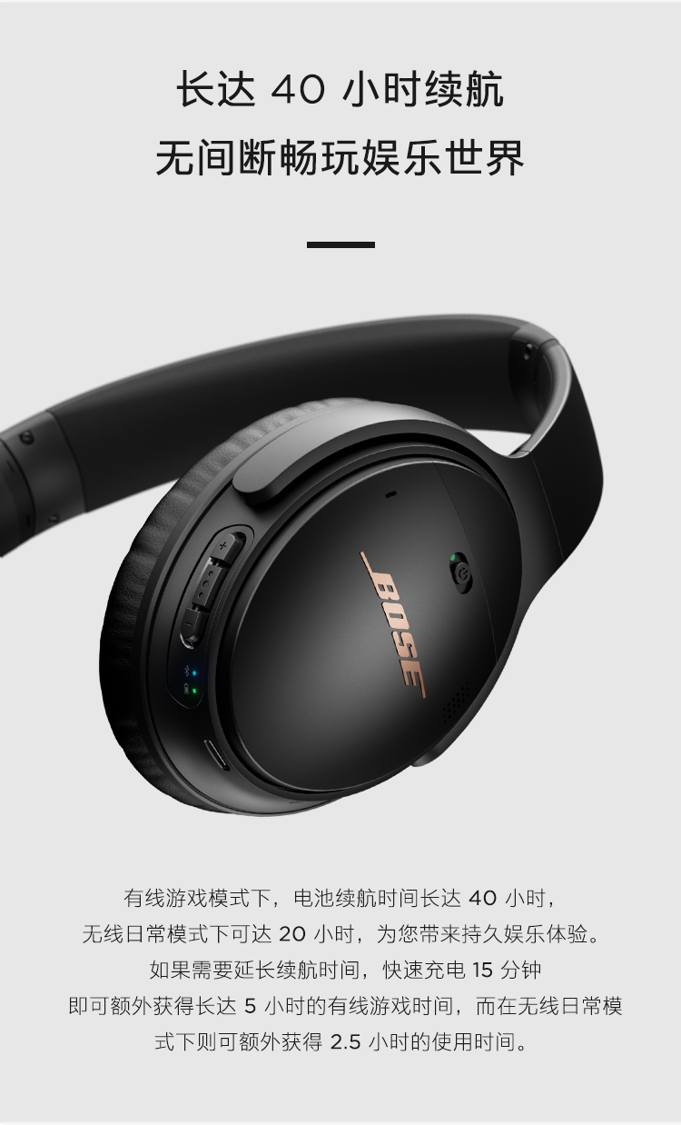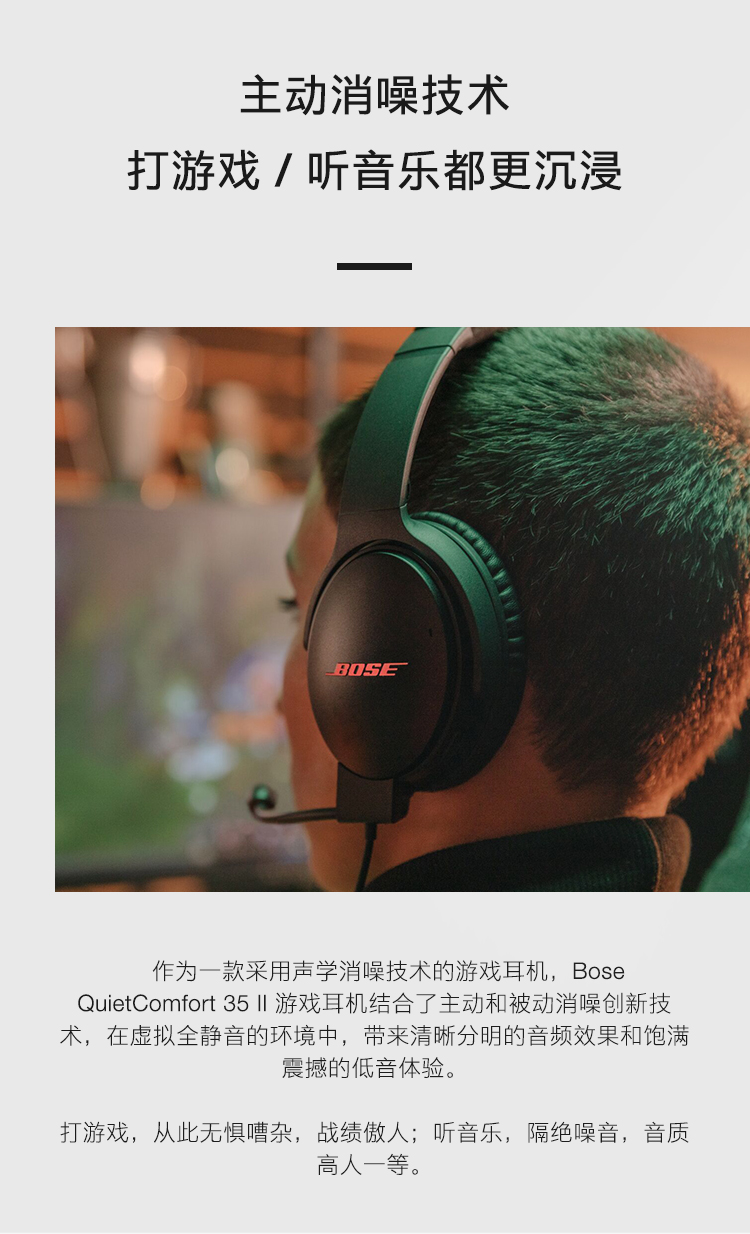 Bose QuietComfort 35 II 游戏耳机 QC35 II 蓝牙降噪头戴式耳麦 电竞有线耳机 带麦克风可拆卸游戏组件