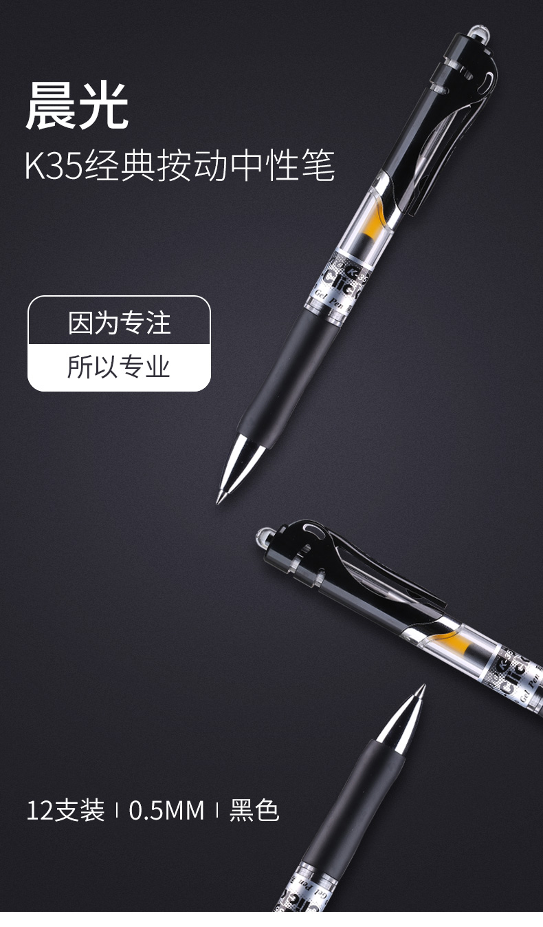 商品名称:晨光(M&G)文具K35/0.5mm黑色中性笔 经典按动子弹头签字笔 办公水笔 12支/盒
