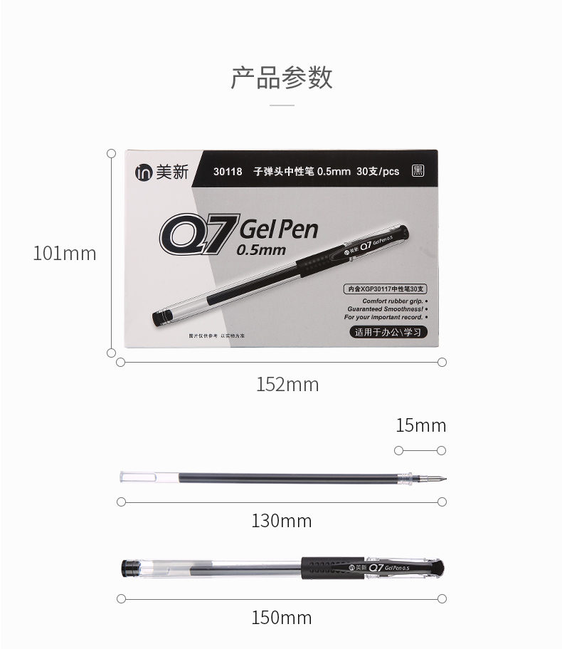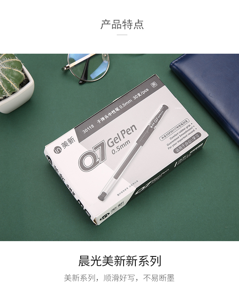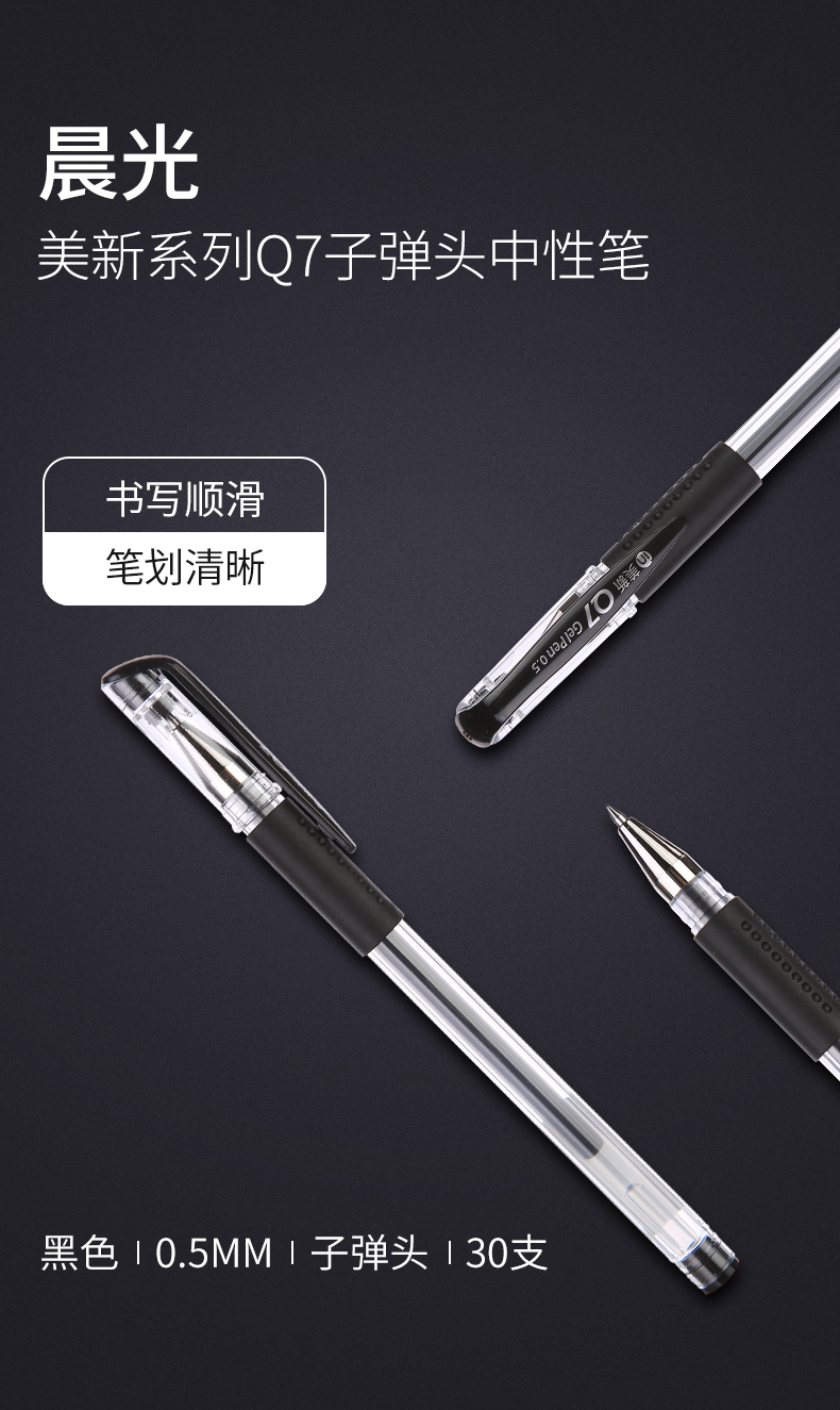商品名称:晨光(M&G)XGP30118文具Q7/0.5mm黑色中性笔 美新系列签字笔 子弹头水笔 30支/盒