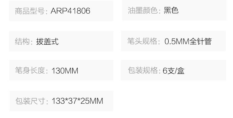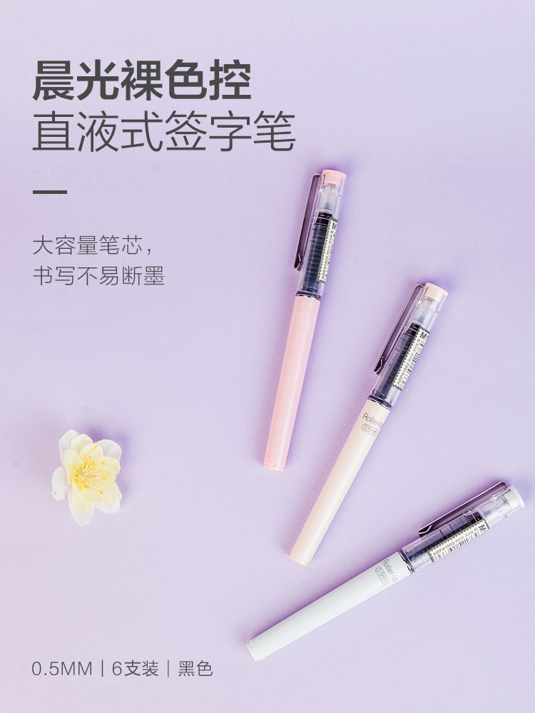 商品名称:晨光(M&G)ARP41806文具0.5mm黑色中性笔 直液式走珠笔 裸色控全针管签字笔水笔 6支/盒