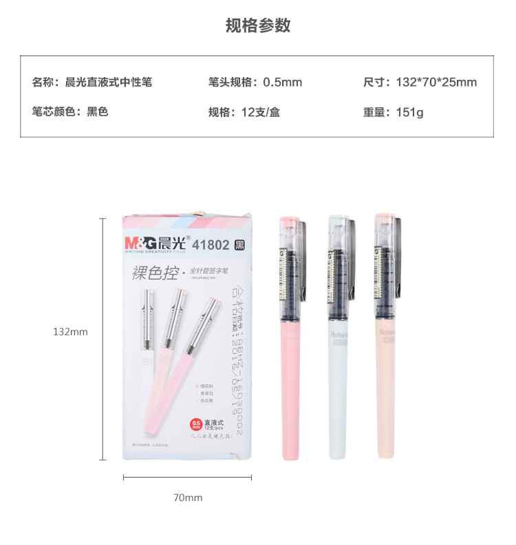 商品名称:晨光(M&G)ARP41802 文具0.5mm黑色中性笔 直液式全针管签字笔 裸色控系列水笔 12支/盒