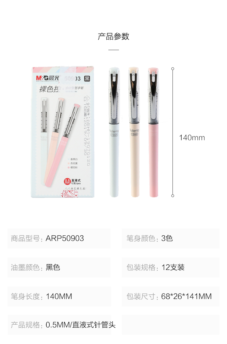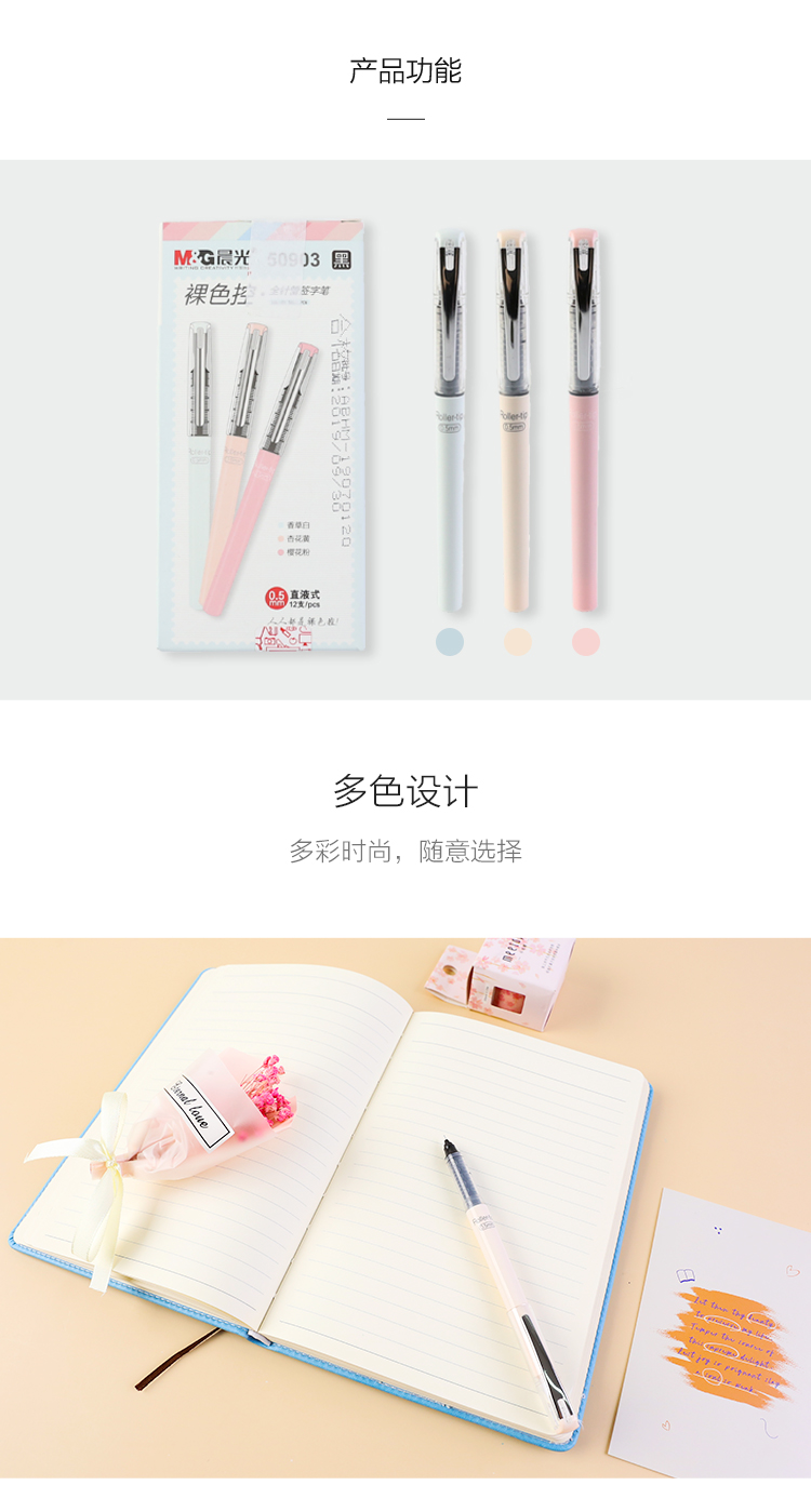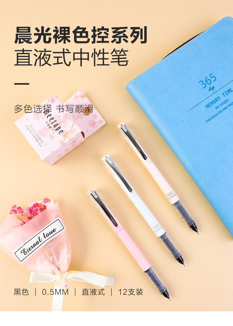 商品名称:晨光(M&G)ARP50903文具0.5mm黑色中性笔 直液式全针管签字笔 裸色控系列学生小清新水笔 12支/盒