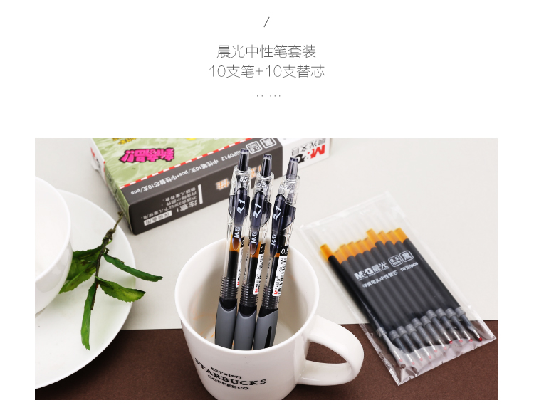 - 商品名称:晨光(M&G)HAGP0912文具GP1008/0.5mm黑色中性笔套装 按动签字笔 办公水笔套装 (10支笔+10支芯)