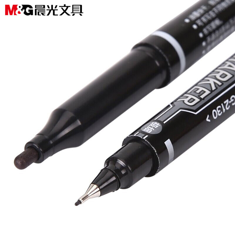 - 商品名称:晨光(M&G)MG2130粗细杆双头多用物流油性记号笔绘画勾线笔描线笔光盘笔12支装 黑色(细杆小双头)