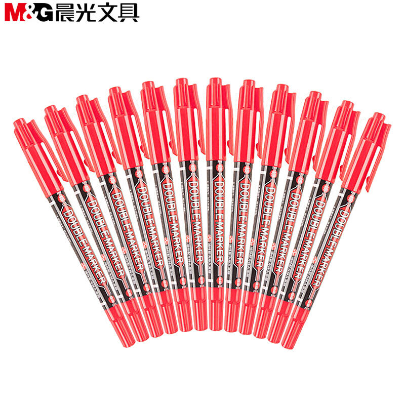 - 商品名称:晨光(M&G)MG2130粗细杆双头多用物流油性记号笔绘画勾线笔描线笔光盘笔12支装 红色(细杆小双头)