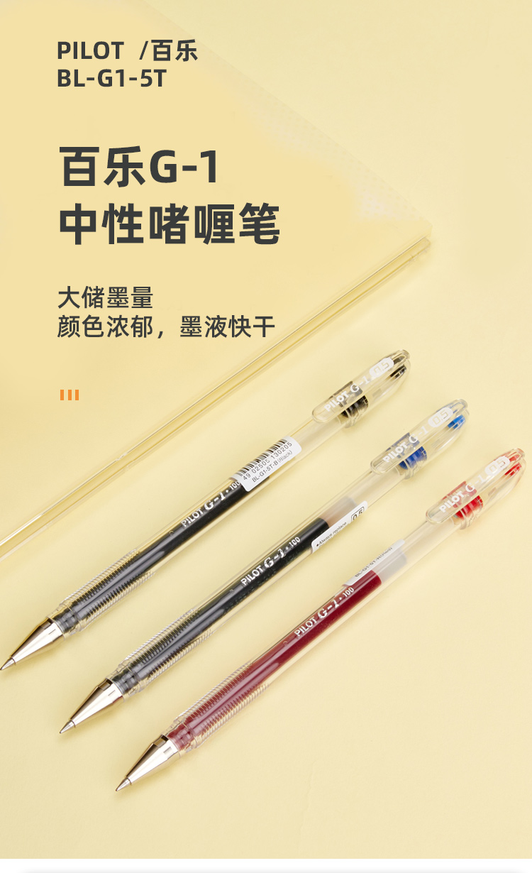 - 商品名称:百乐(PILOT)BL-G1-5T 子弹头中性笔 0.5mm啫喱笔水笔签字笔 学生考试笔 黑色