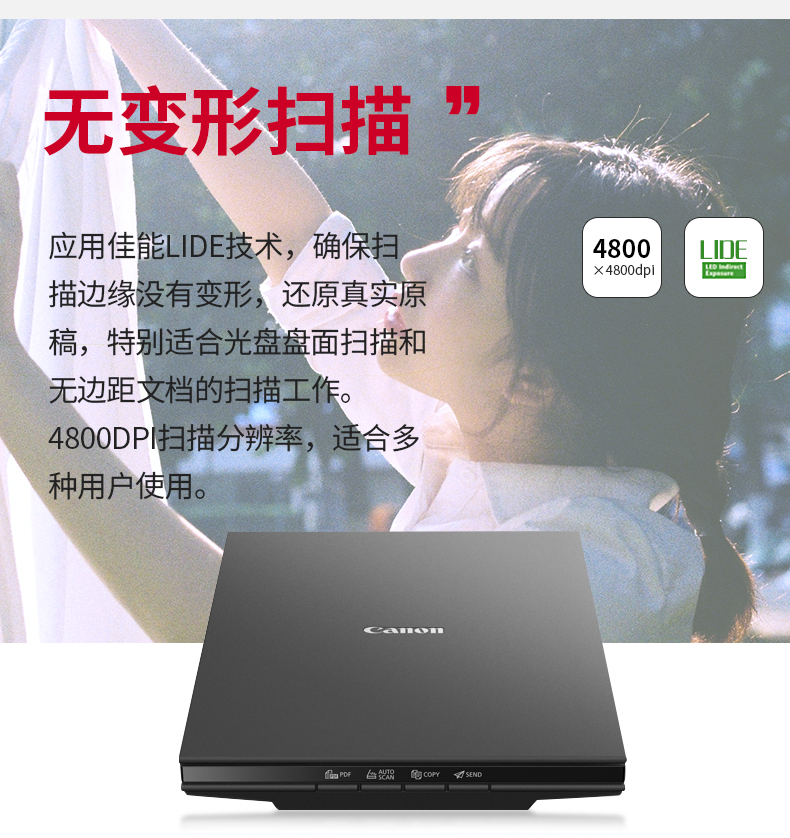 - 商品名称:佳能扫描仪LiDE400/300/c225照片高速文档双面扫描仪家用身份证扫描仪 平板式高效型LiDE400