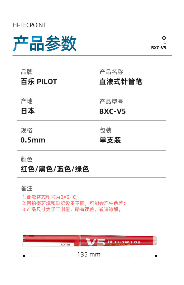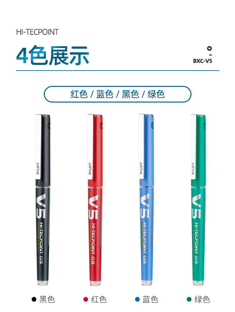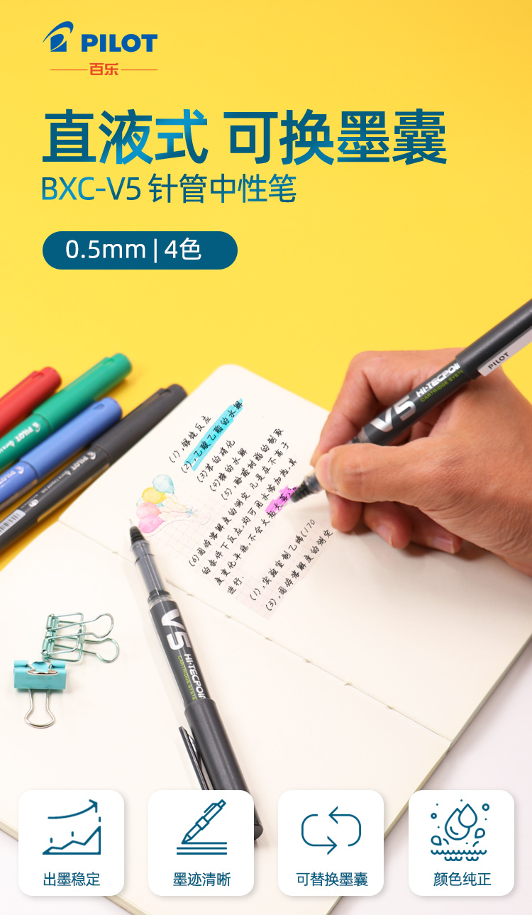 - 商品名称:百乐(PILOT)BXC-V5直液式走珠笔中性水笔针管笔0.5mm签字笔 V5升级版可换墨胆 黑色