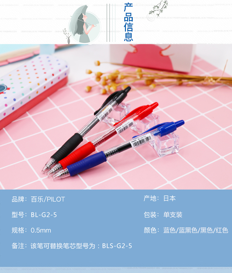 商品名称:百乐(PILOT)BL-G2-5 按动中性笔 0.5mm子弹头签字笔 学生考试财务啫喱水笔 黑色