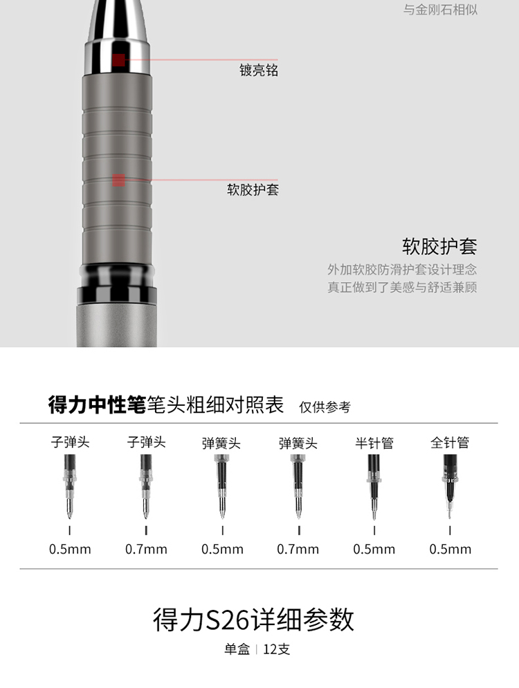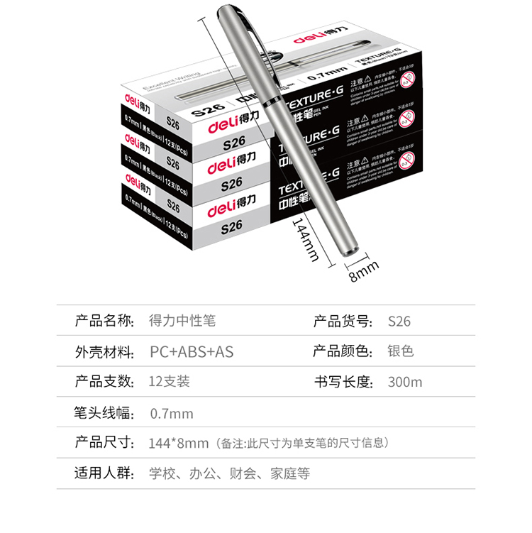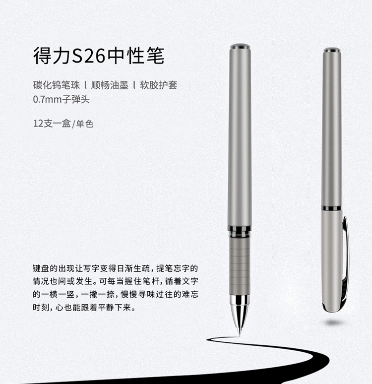 商品名称:得力(deli)DL-S26 0.7mm黑色中性笔水笔签字笔 碳素笔 办公用品 12支/盒