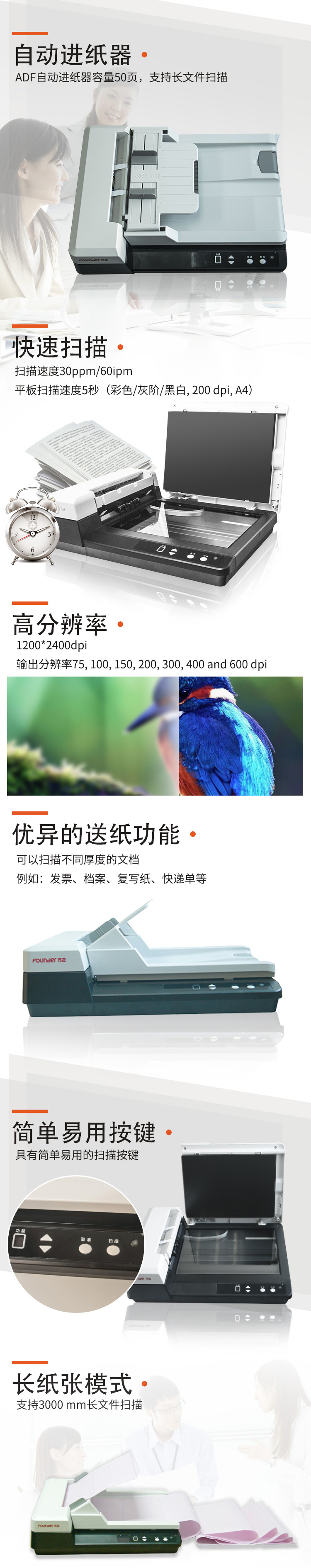 - 扫描速度:30ppm/60ipm (彩色/灰阶/黑白, 200 dpi, A4)