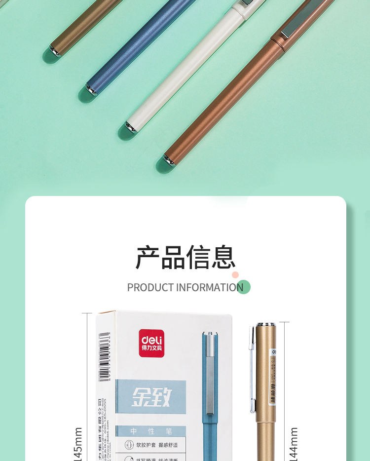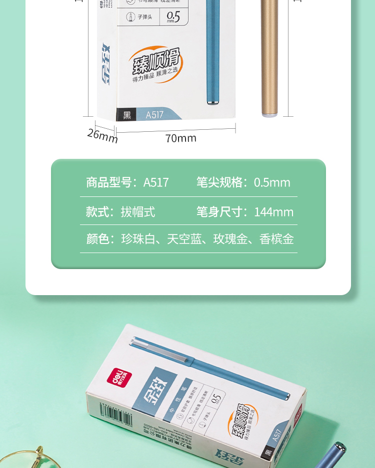 商品名称:得力(deli)A517 金致系列臻顺滑中性笔 时尚签字笔12支/盒