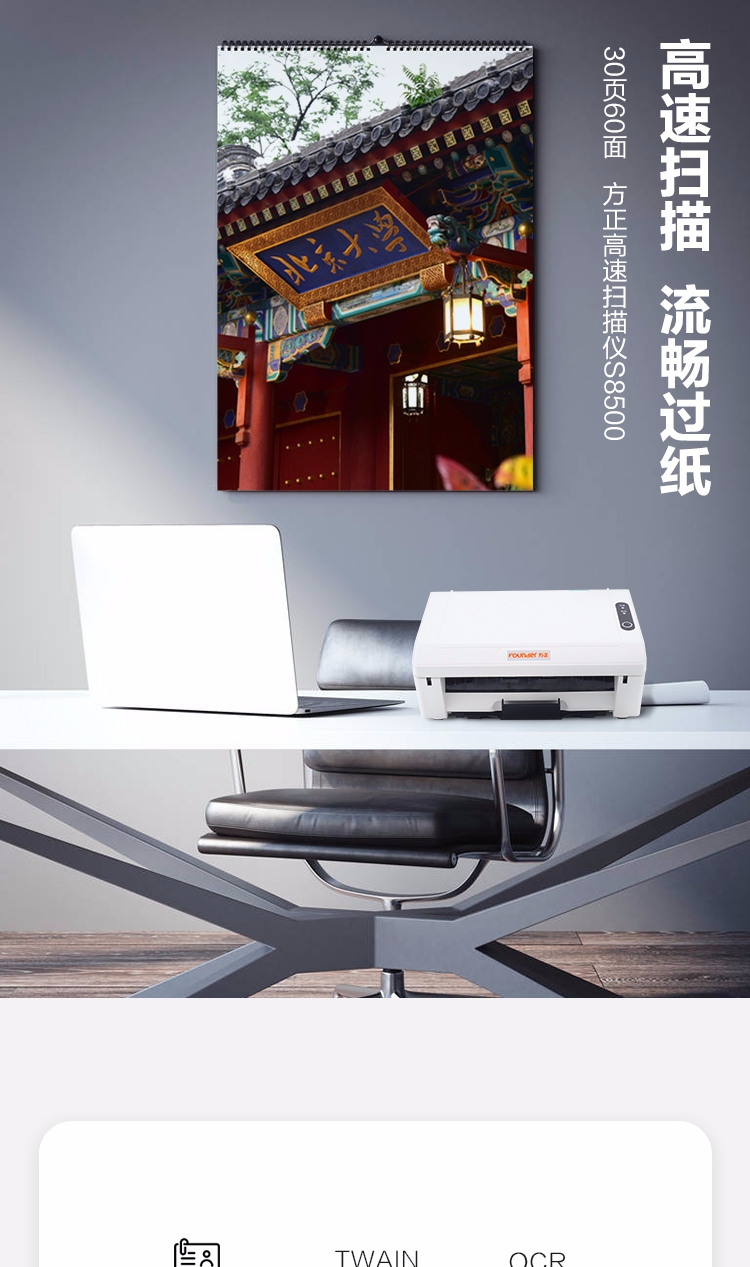 - 商品名称:方正(Founder)S8500 30页60面/分钟A4高速高清彩色CCD 办公文档照片硬卡 自动双面国产扫描仪