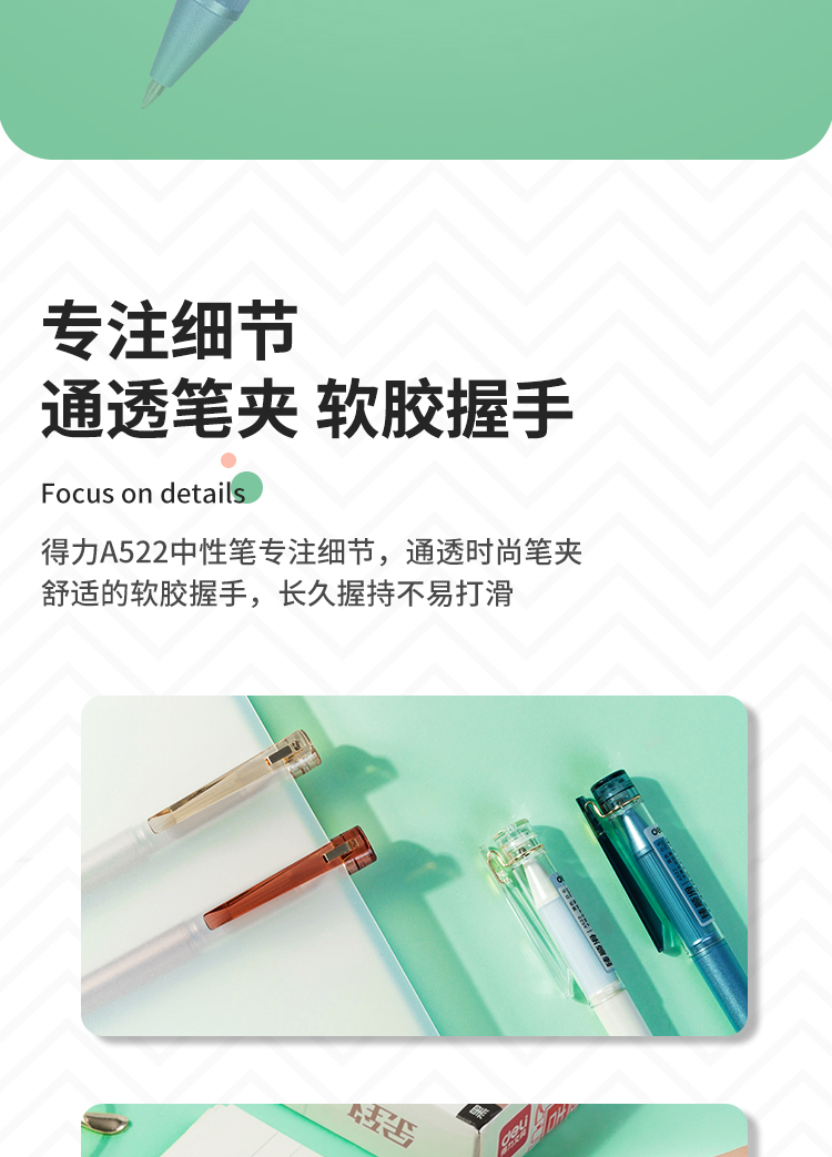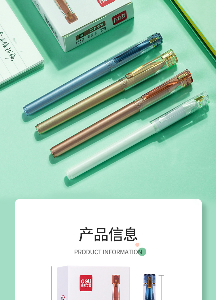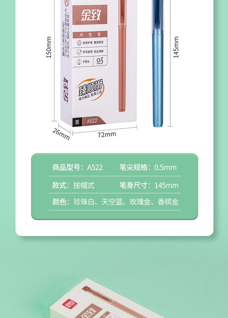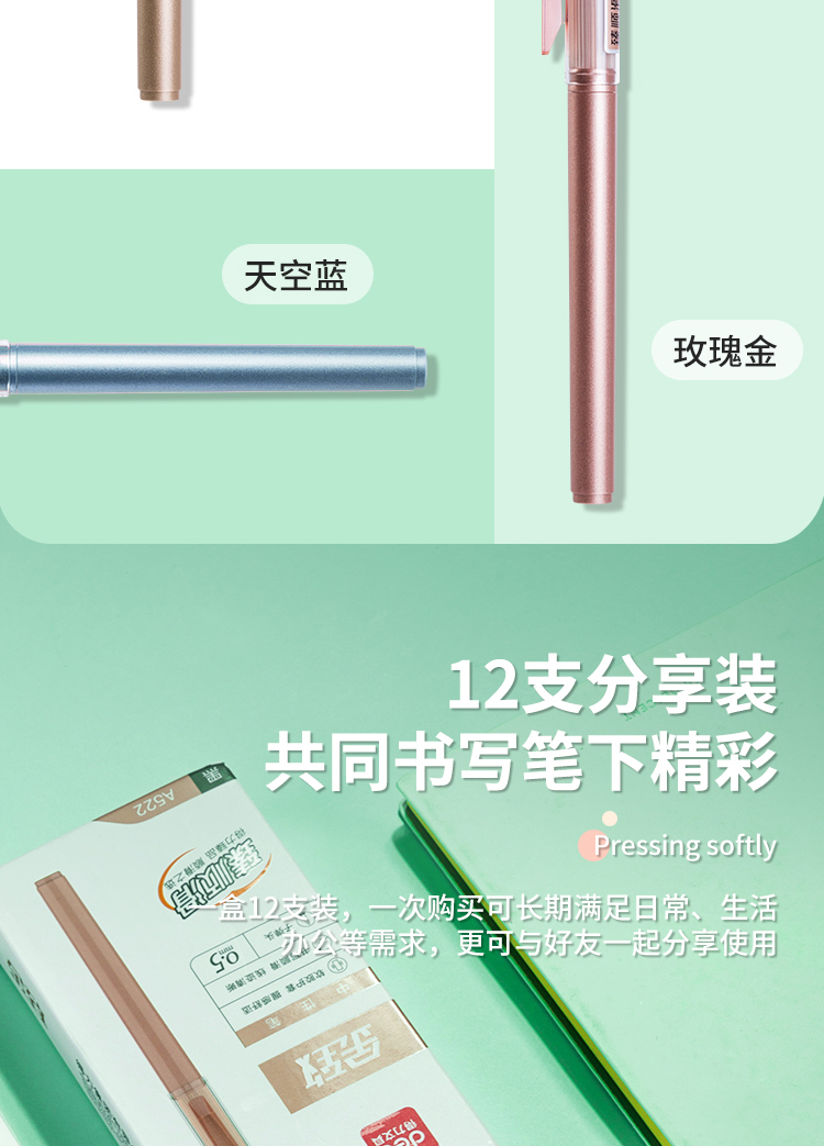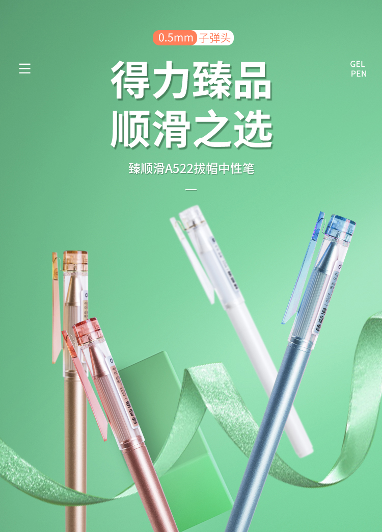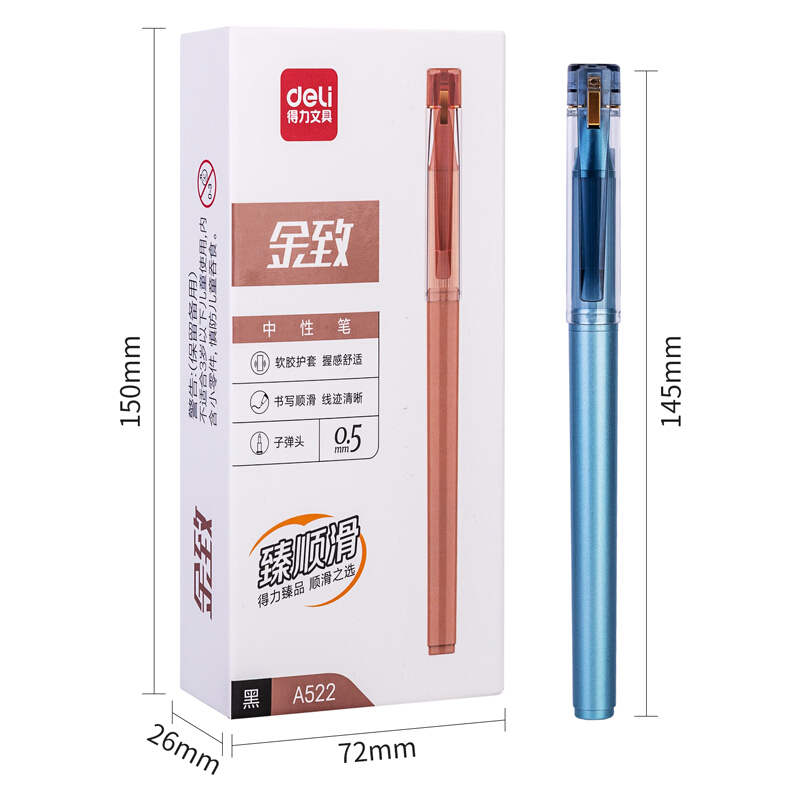 商品名称:得力(deli)A522 金致系列臻顺滑中性笔 时尚签字笔12支/盒
