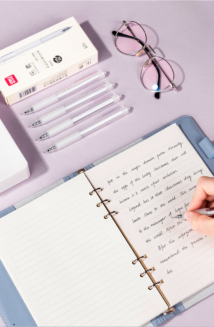 得力(deli)DL-A122 按动中性笔 学生签字笔 简约无印风 0.35mm全针管12支/盒