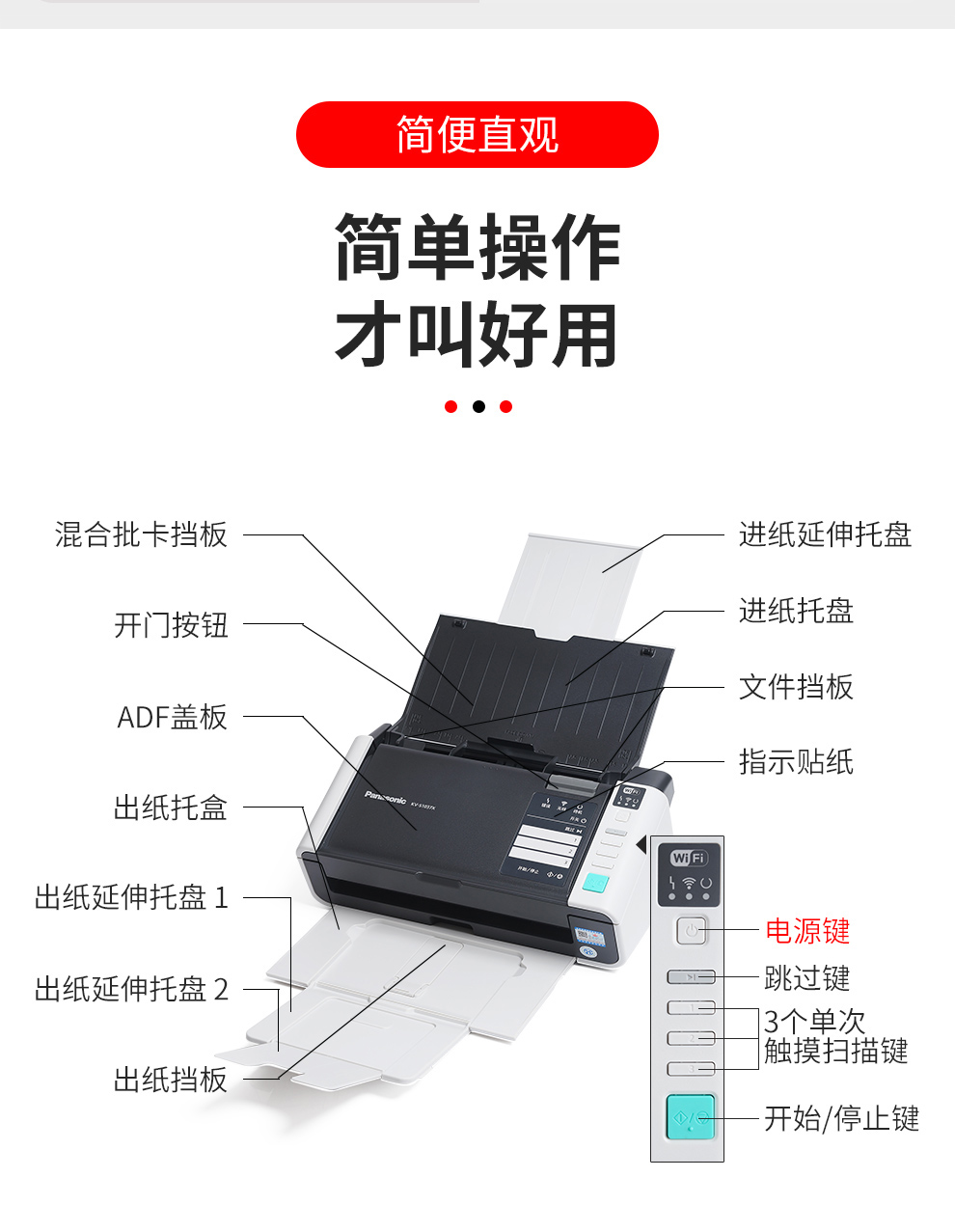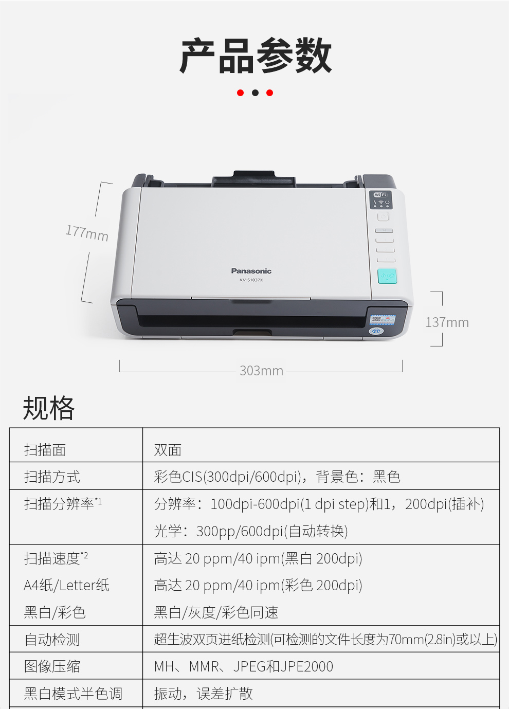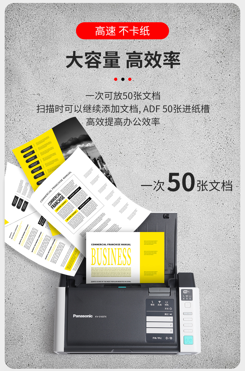 商品名称:松下KV-s1037X 高速扫描仪办公 双面文档发票批量扫描 自动走纸一键多页PDF 无线网络 KV-S1015c 20页40面/分钟/不支持无线