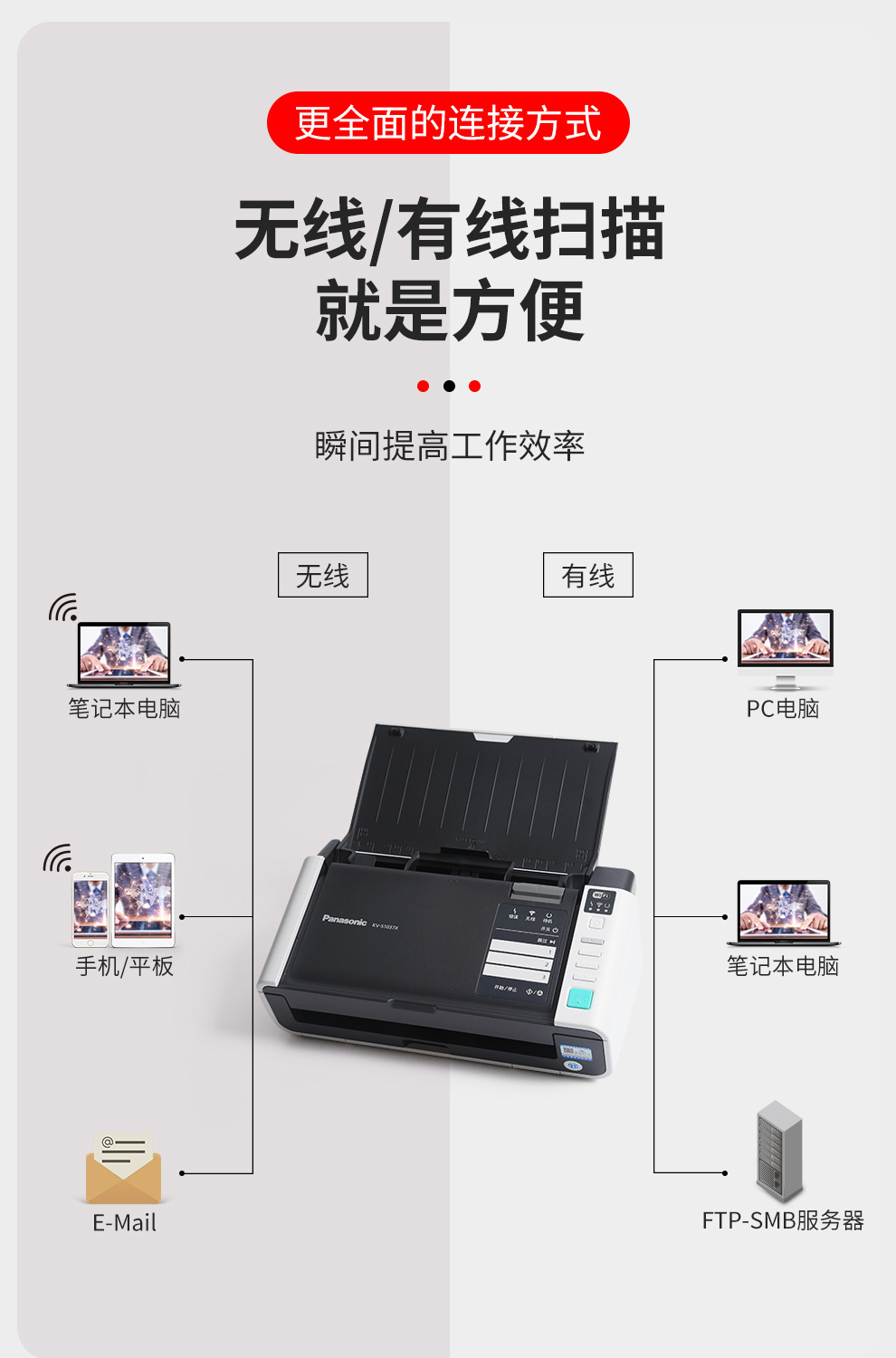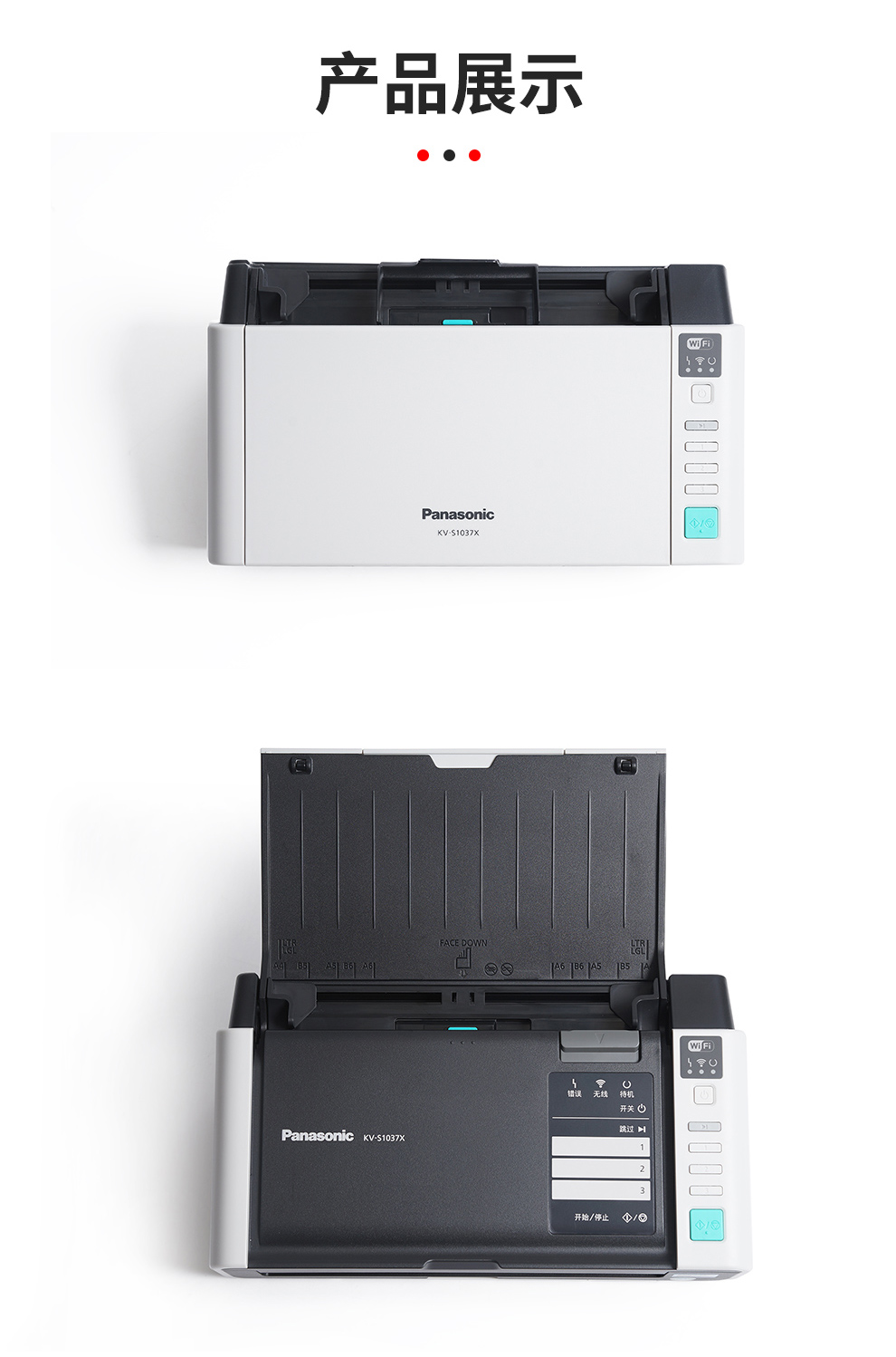 松下KV-s1037X 高速扫描仪办公 双面文档发票批量扫描 自动走纸一键多页PDF 无线网络 KV-S1015c 20页40面/分钟/不支持无线