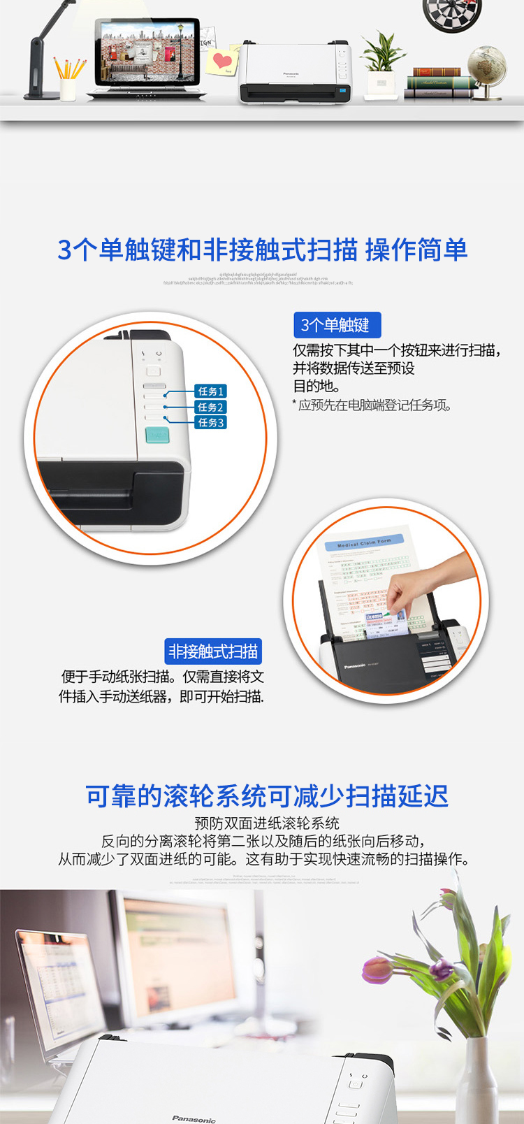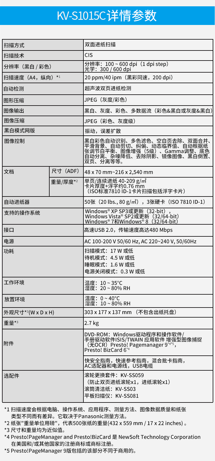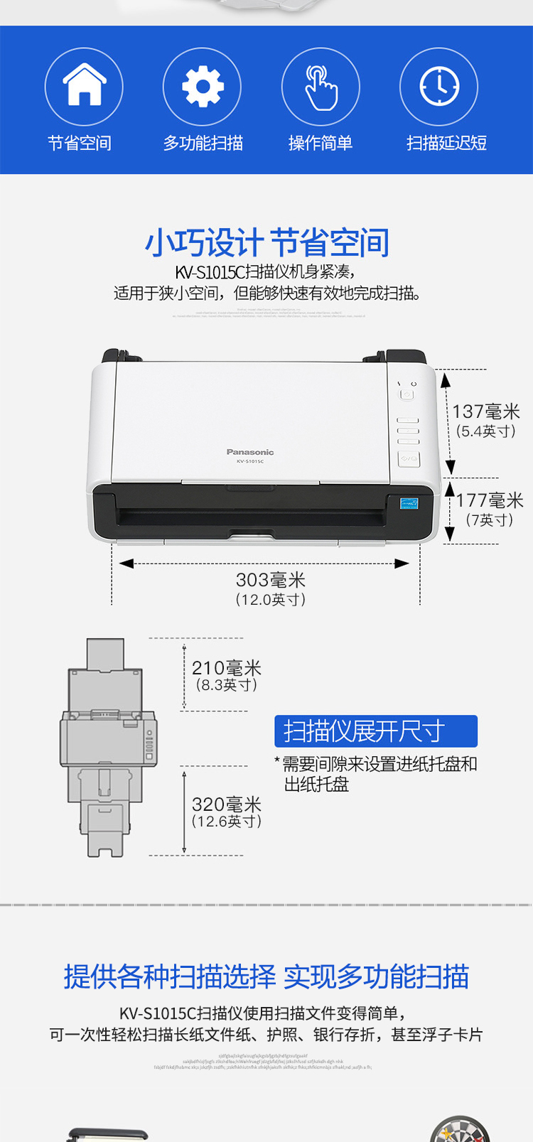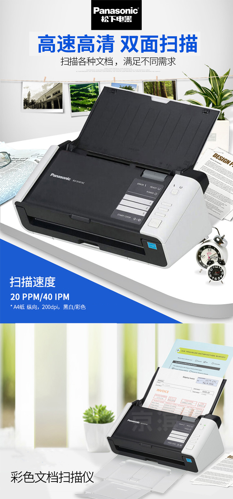 - 商品名称:松下KV-S1015C/S1037X/S1038 馈纸式高速扫描仪小型办公扫描连续双面彩色A4文档 KV-S1015C 【20页40面/分钟】1年保