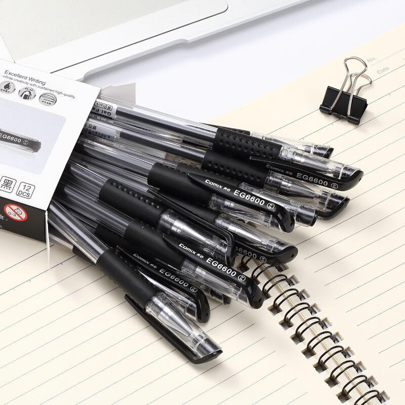 齐心(Comix)EG6600 0.5mm红色经典办公子弹头中性笔 水笔签字笔12支/盒