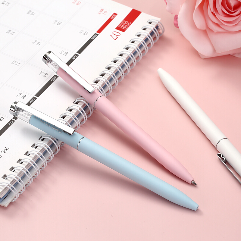 齐心(Comix)GP386 速干旋转出芯中性笔子弹头签字笔0.5mm水笔磨砂水晶笔杆蓝