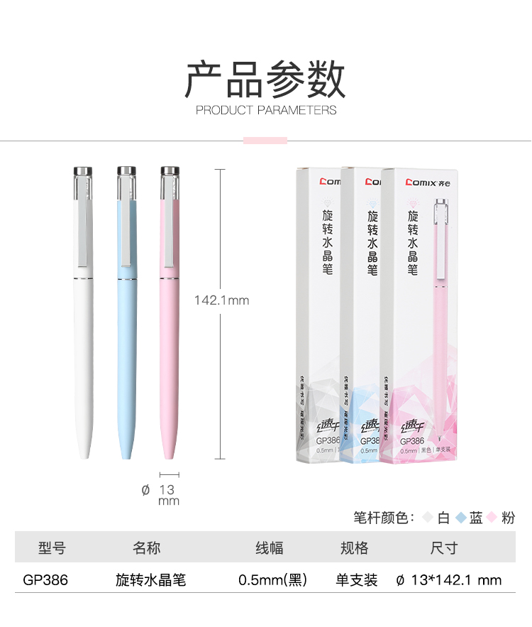 商品名称:齐心(Comix)GP386 速干旋转出芯中性笔子弹头签字笔0.5mm水笔磨砂水晶笔杆蓝