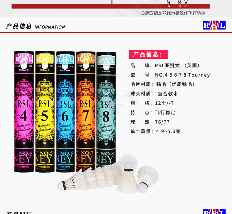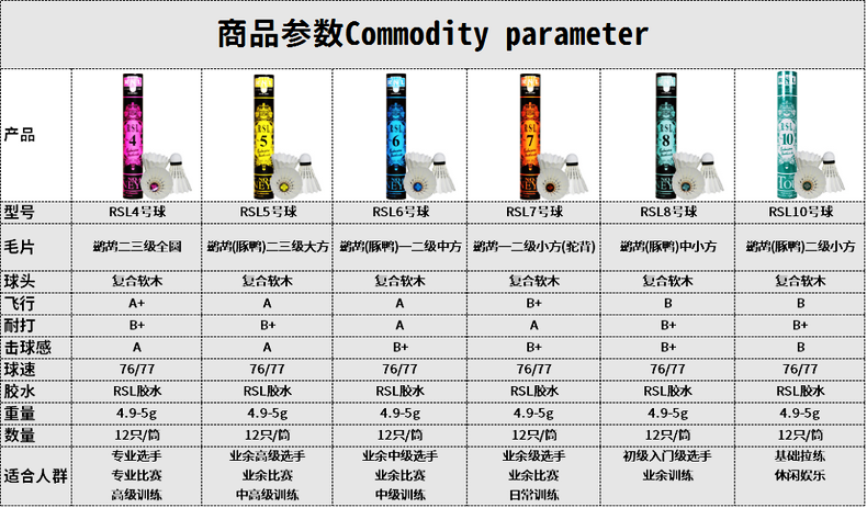 - 商品名称:亚狮龙(RSL) 羽毛球鸭毛球12只装/桶 耐打稳定 比赛训练 RSL10号 1桶装