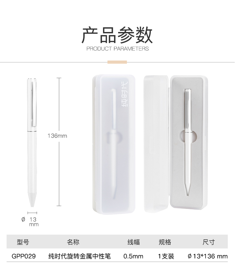 - 商品名称:齐心(Comix)GPP029旋转出笔金属中性笔会议签字笔水笔签名笔黑色0.5mm 珠光白