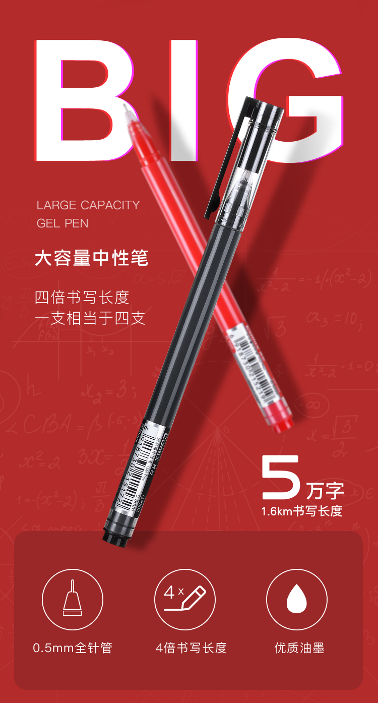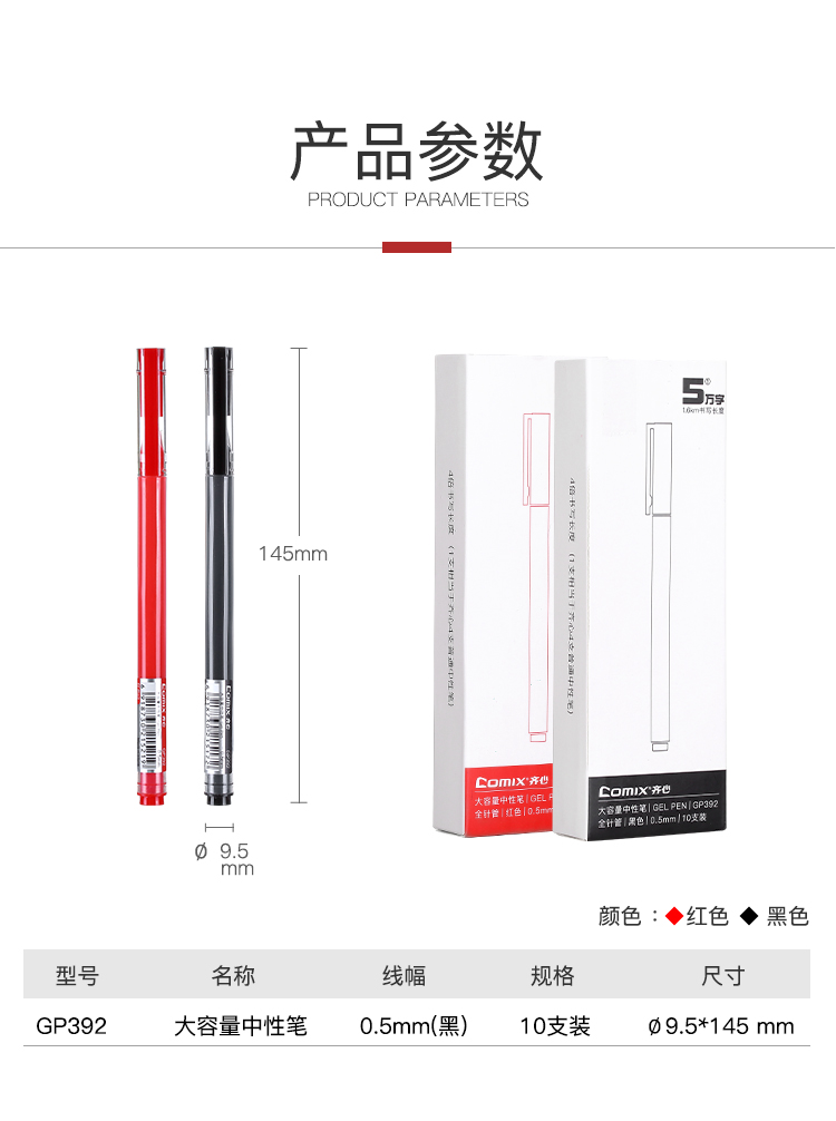 - 商品名称:齐心(Comix) GP392 大容量全针管中性笔/0.5mm巨能写签字笔/黑色水笔1.6km书写长度 10支装
