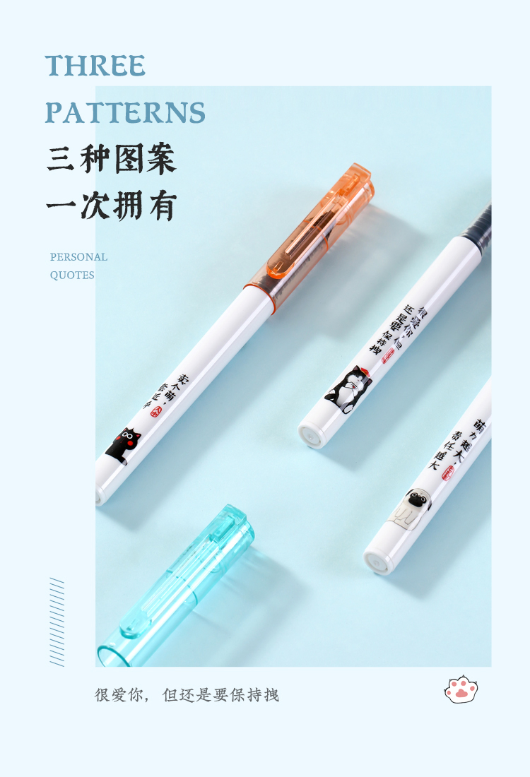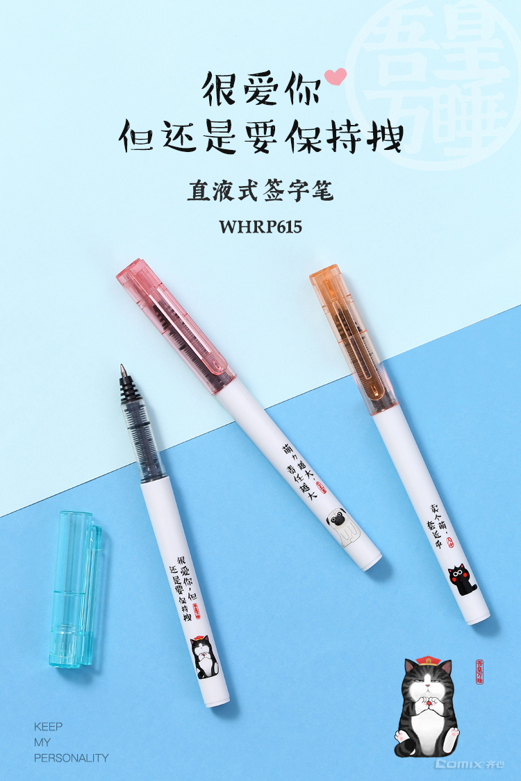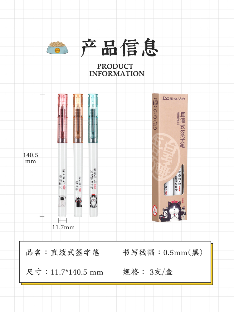 - 商品名称:齐心(Comix)WHRP615 吾皇万睡联名直液式中性笔/0.5mm签字笔/子弹头水笔3支装 黑