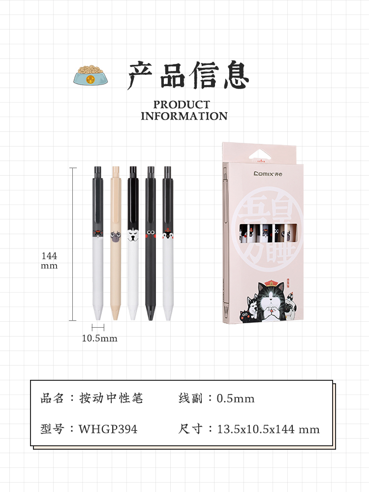 - 商品名称:齐心(Comix)WHGP394 吾皇万睡联名按动中性笔/子弹头水笔/0.5mm签字笔 5支装 黑