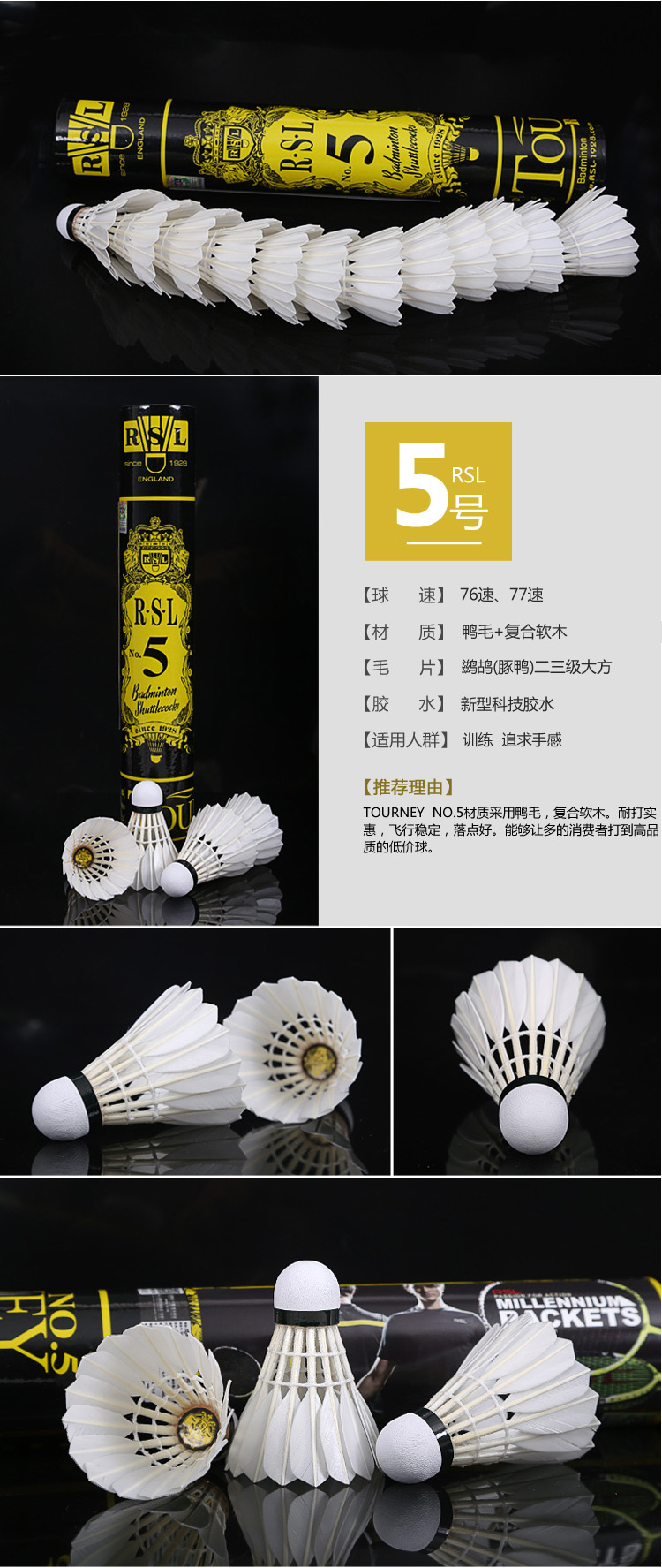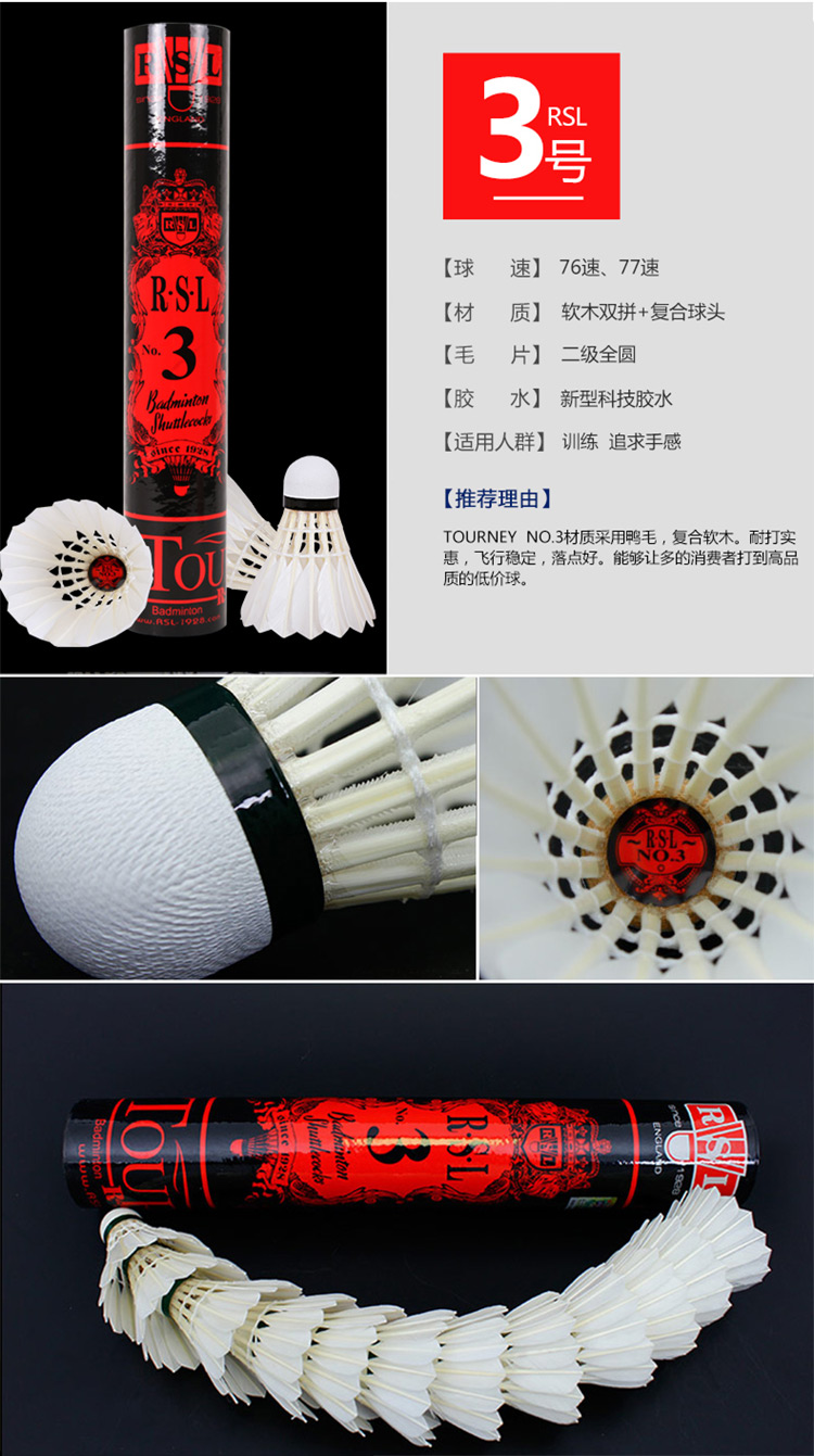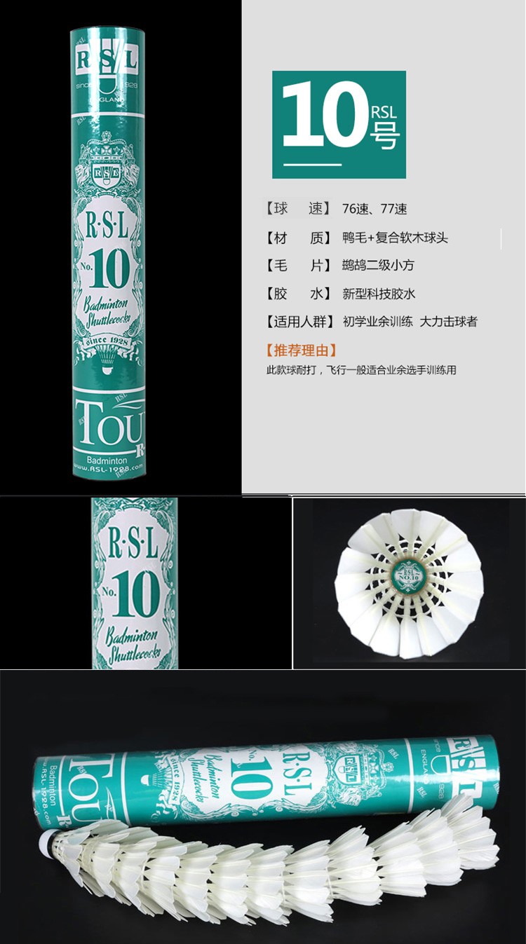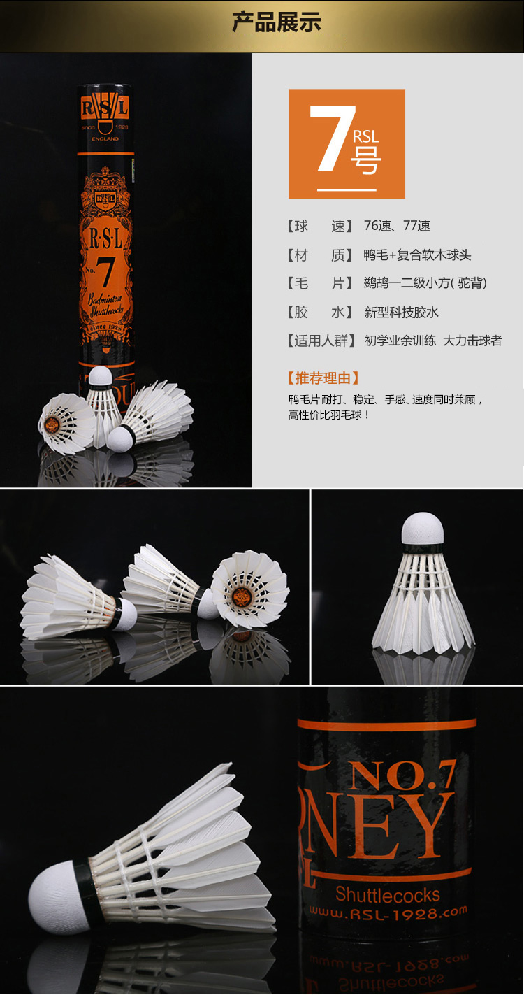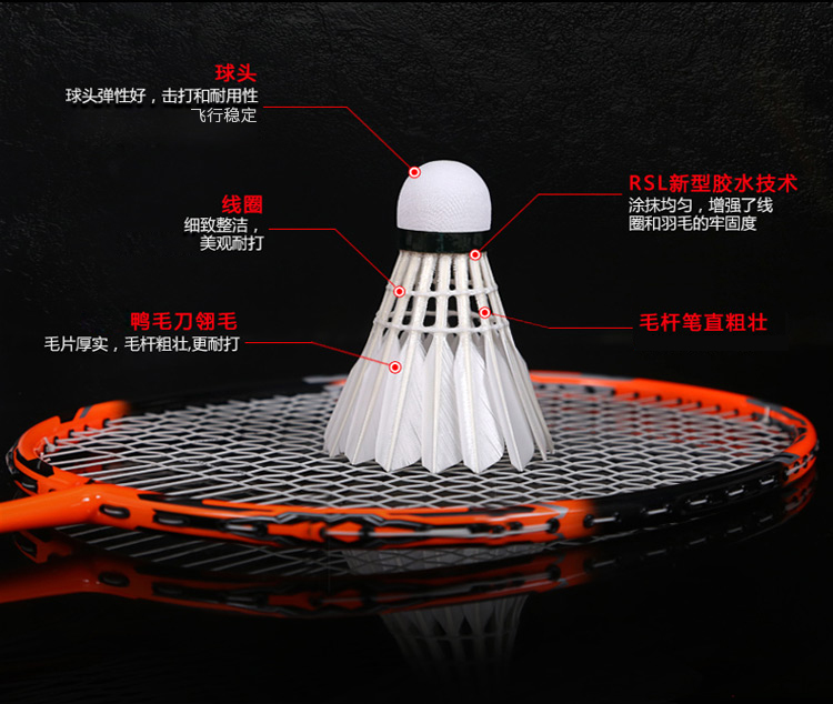 - 商品名称:亚狮龙(RSL)羽毛球鸭毛球12只装/桶耐打稳定比赛训练 RSL7号