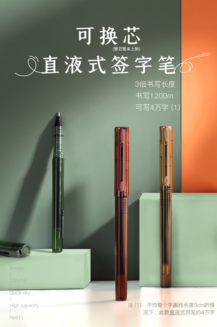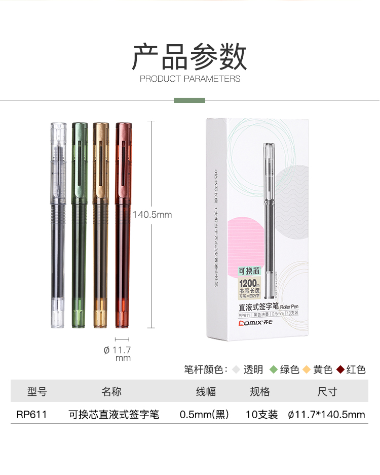 商品名称:齐心(Comix)RP611大容量全针管直液式中性笔/0.5mm巨能写签字笔/水笔 1.6KM书写长度 黑色10支装