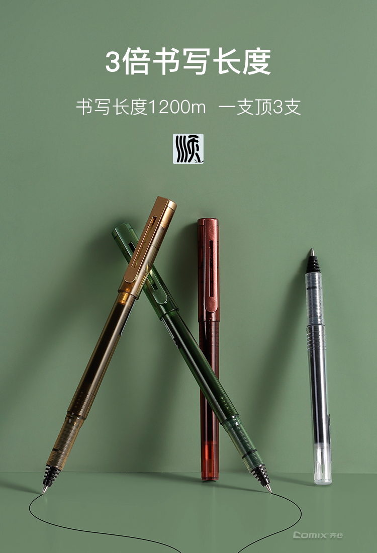 齐心(Comix)RP611大容量全针管直液式中性笔/0.5mm巨能写签字笔/水笔 1.6KM书写长度 黑色10支装