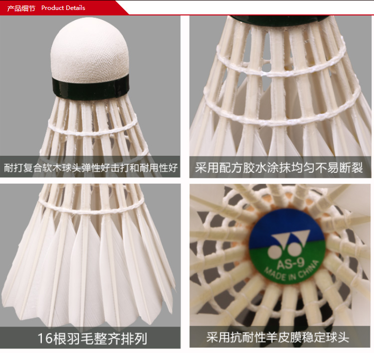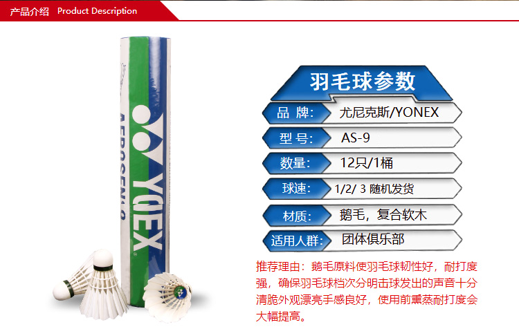 - 商品名称:尤尼克斯 YONEX羽毛球AS-9耐打王yy训练比赛鹅毛 12只装