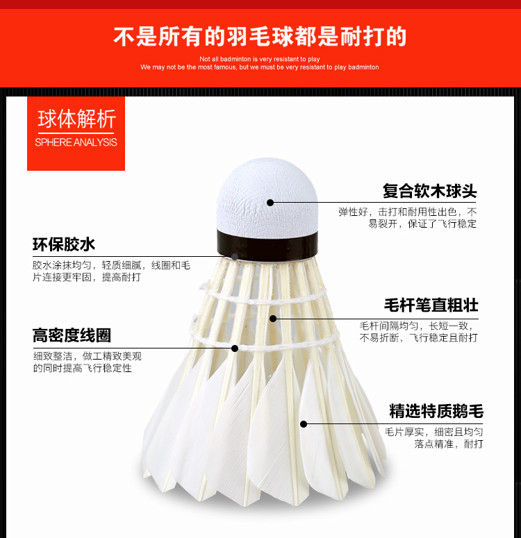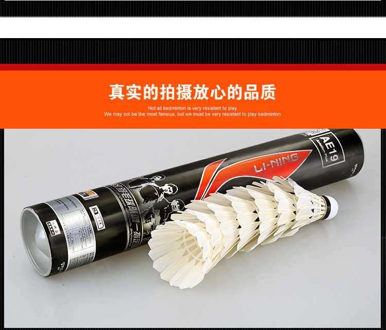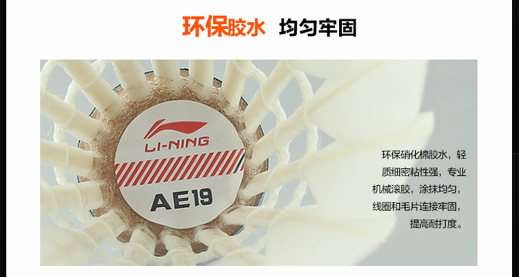 商品名称:李宁/Lining 羽毛球 AE19 鹅毛球比赛训练耐打球 77速 12只装