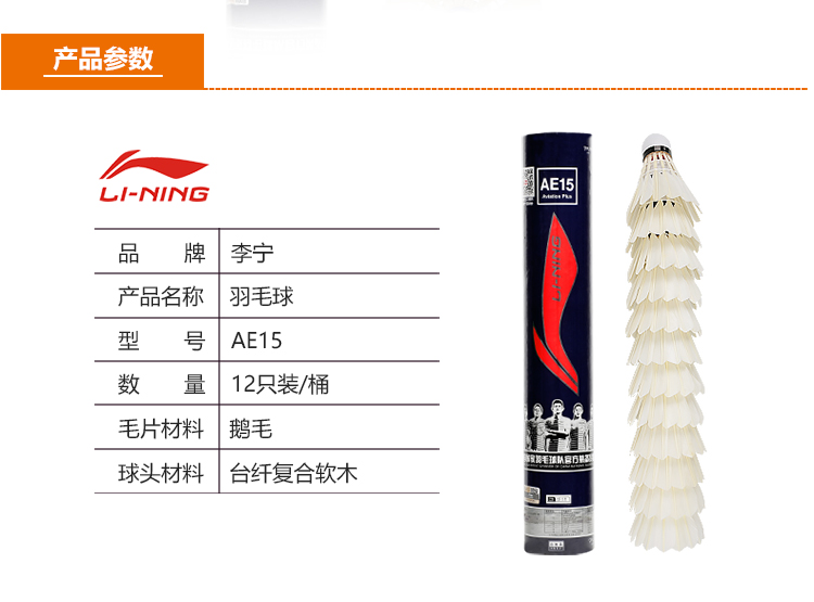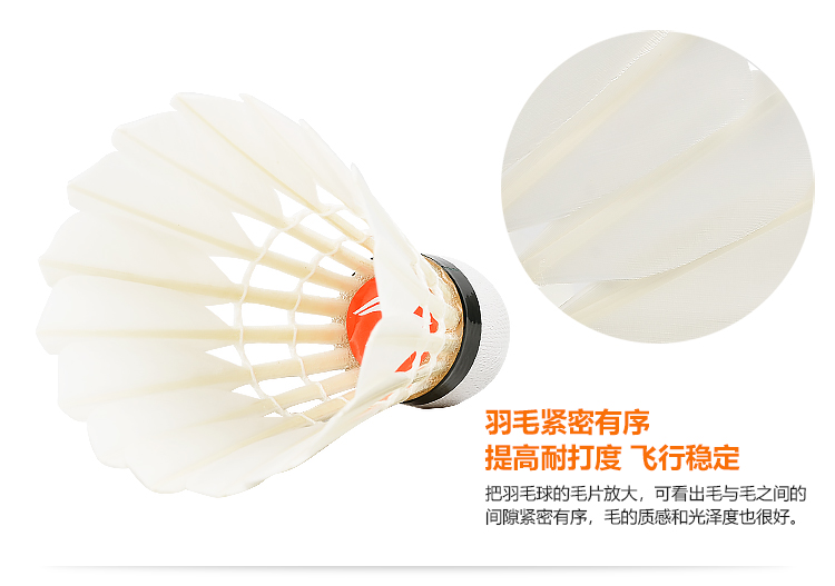 - 商品名称:李宁 LI-NING 羽毛球 鹅毛球比赛 耐打飞行稳定12只装 AE15