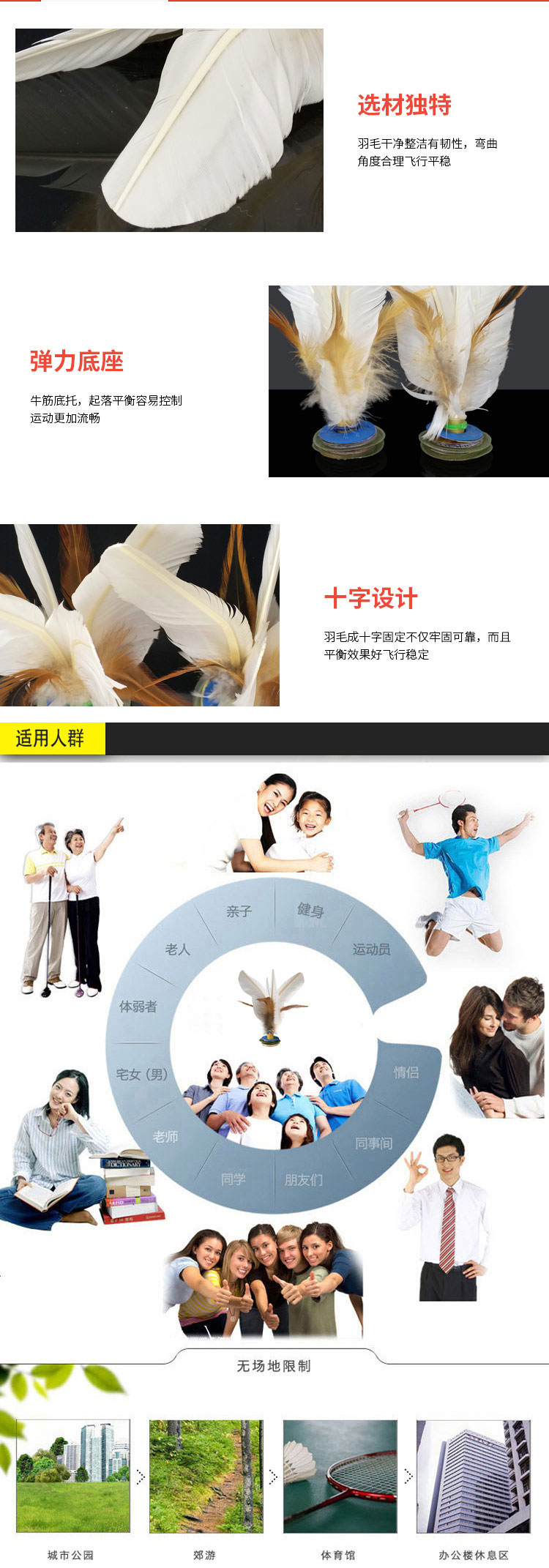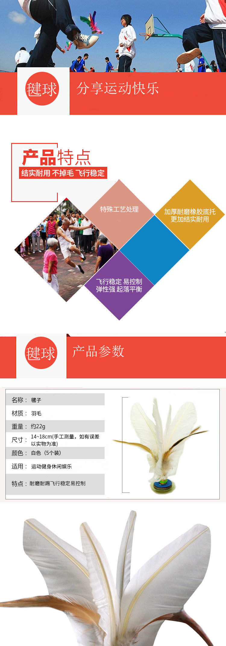 商品名称:杜威克 毽子 成人毽球5个装鹅毛比赛专用儿童健身牛筋底花毽 白色 白色