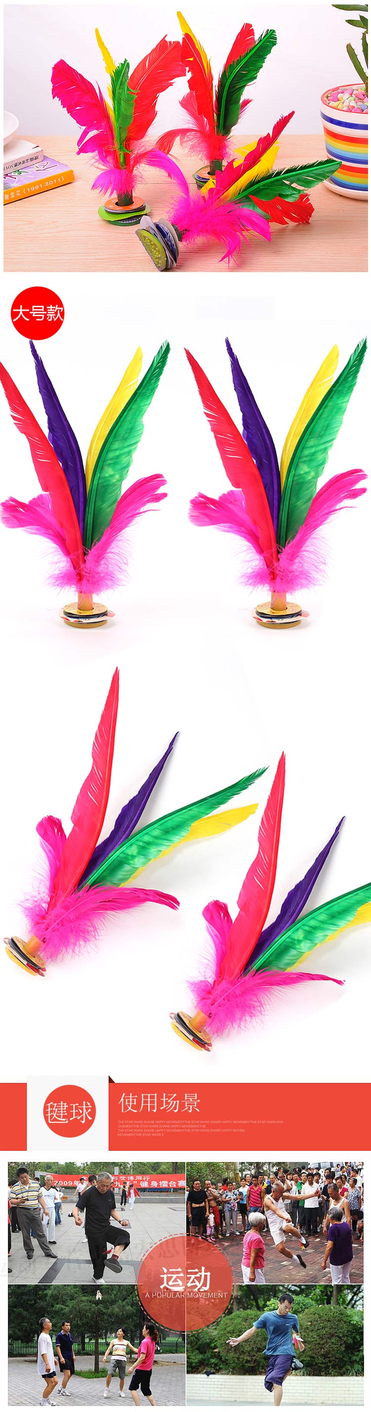- 商品名称:杜威克 毽子大号鹅毛羽毛彩色比赛毽球牛筋底花键儿童毽子5个装