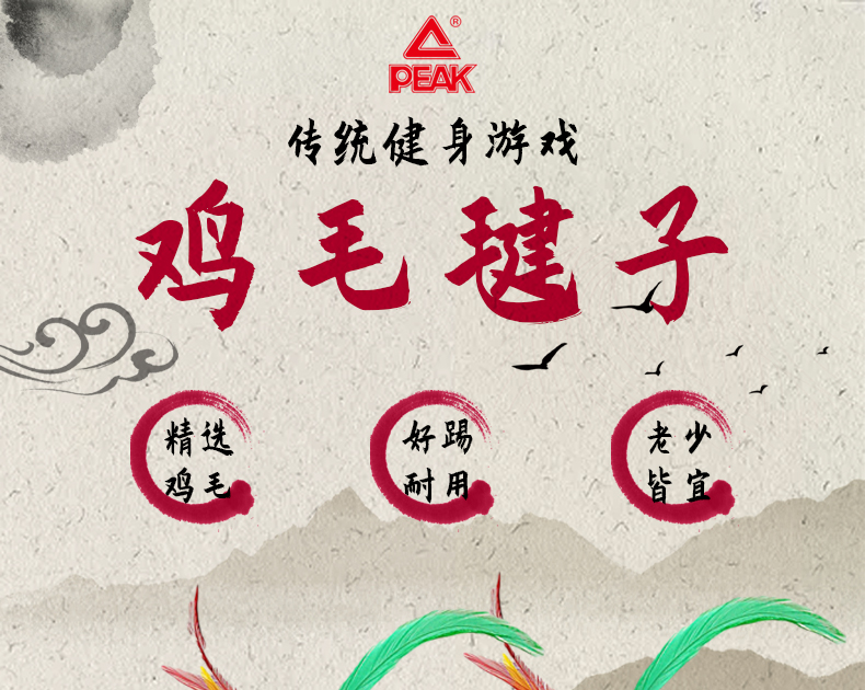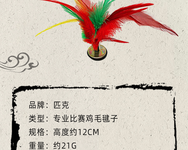 商品名称:匹克 公鸡毛毽子彩色牛筋底比赛训练毽球不易折耐用型5只装