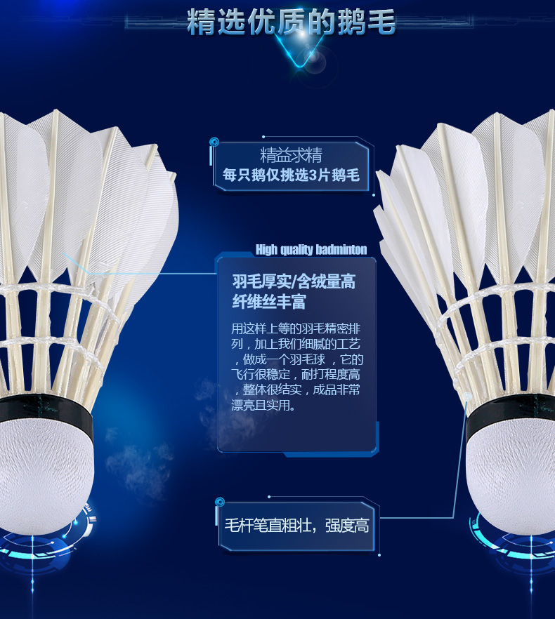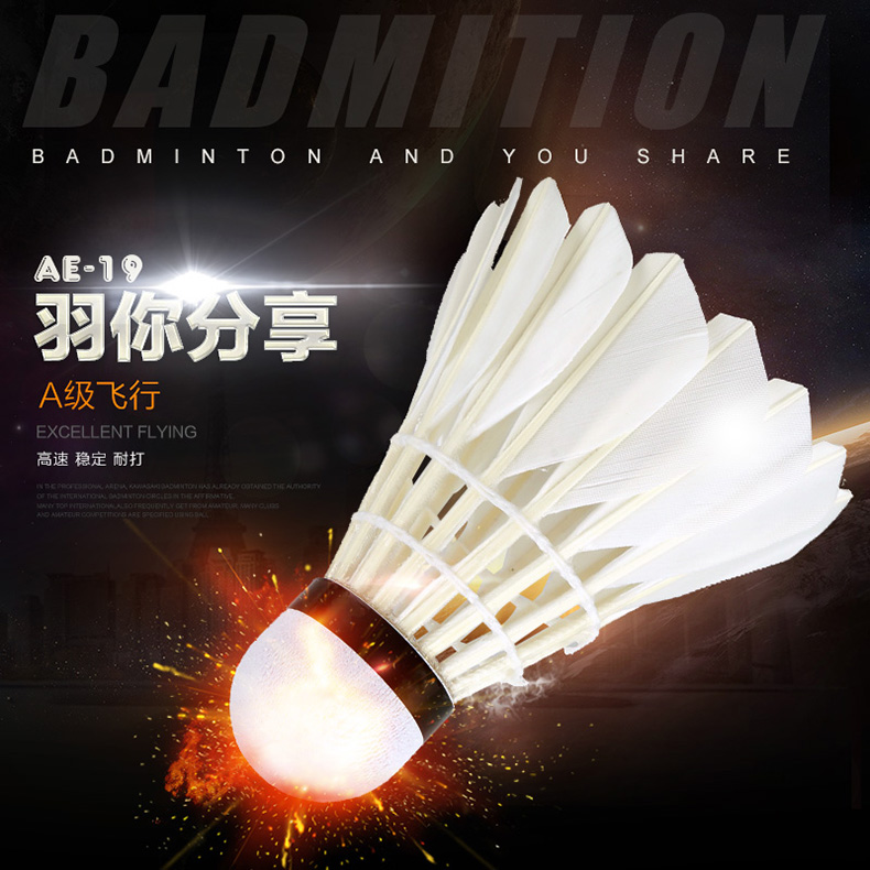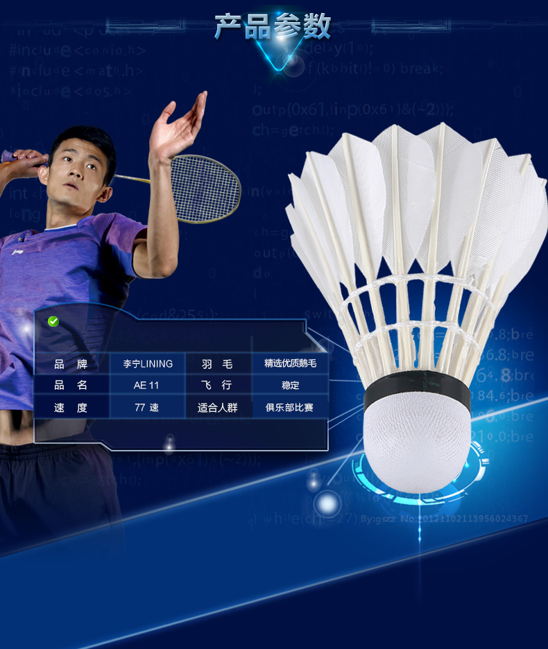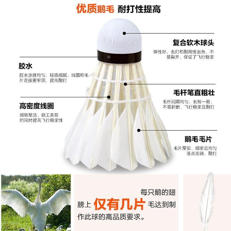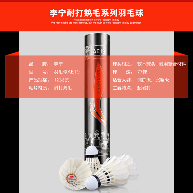 - 商品名称:李宁羽毛球 比赛级耐打王鹅毛球lining国家队训练羽球 AE19(优质鹅毛)12只装