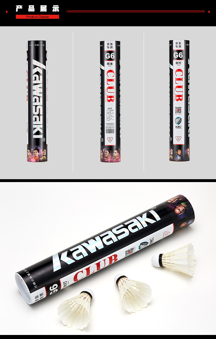 商品名称:川崎KAWASAKI羽毛球 鹅毛球比赛训练耐打球 12只装 77速 G6