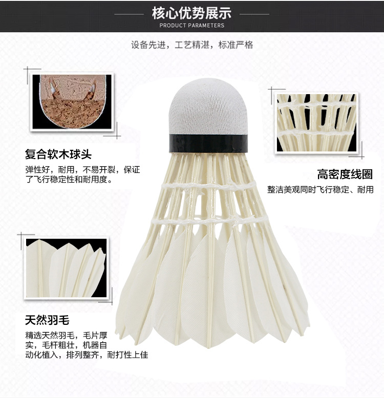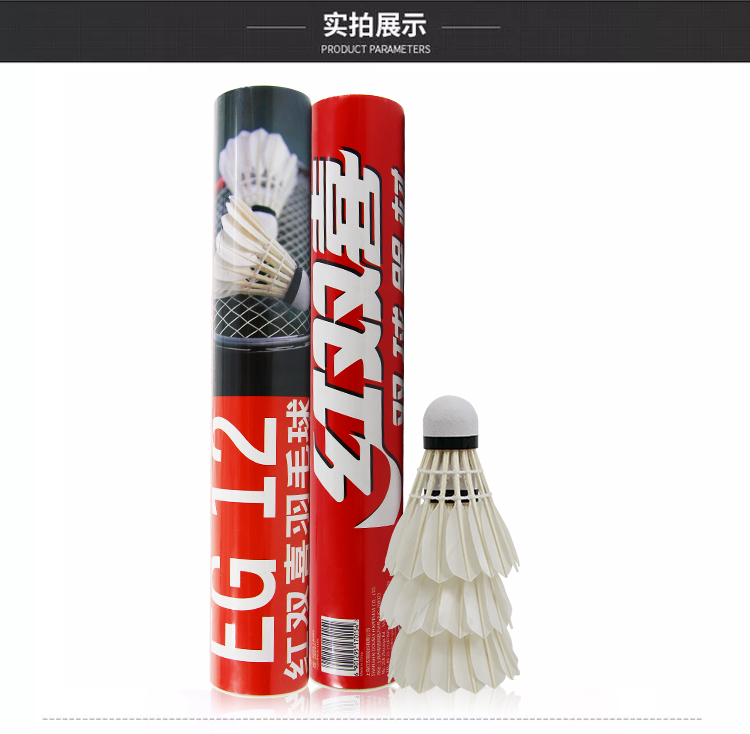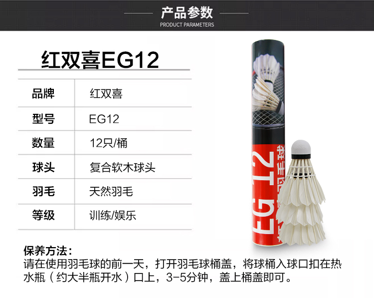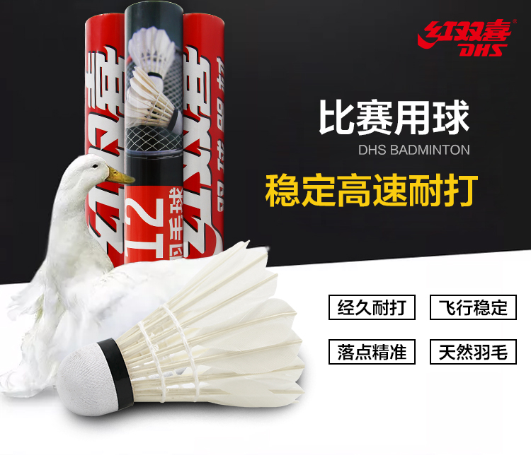 - 商品名称:红双喜DHS羽毛球比赛训练耐打复合软木鹅毛羽毛球E-EG12(12只装)
