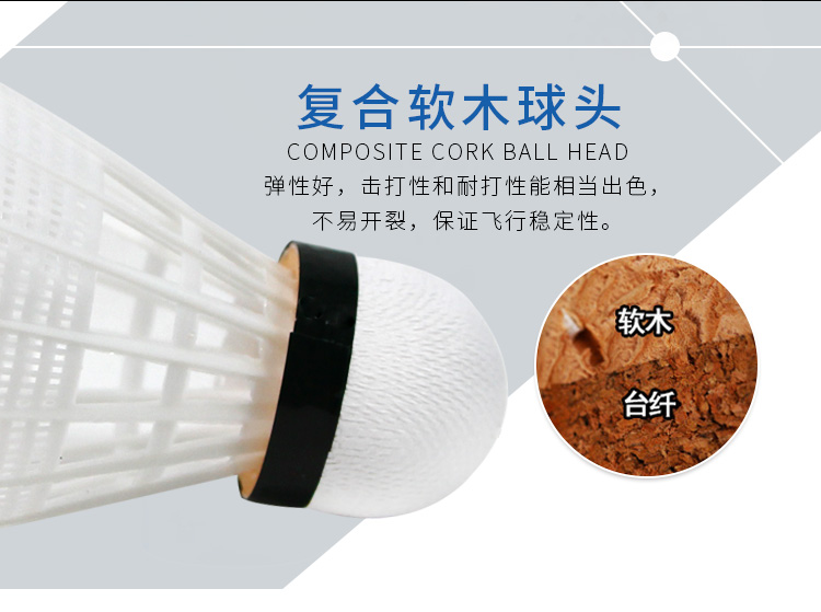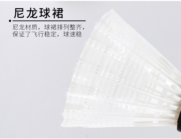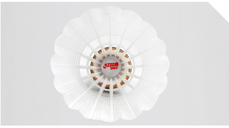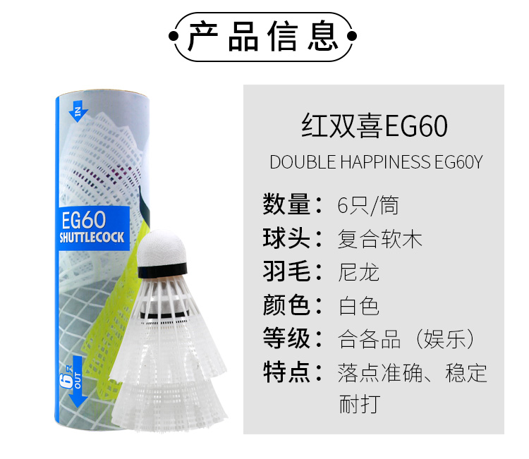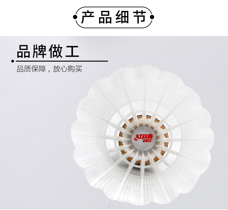 商品名称:红双喜DHS耐打训练尼龙羽毛球塑料胶练习羽球6只装白色EG60