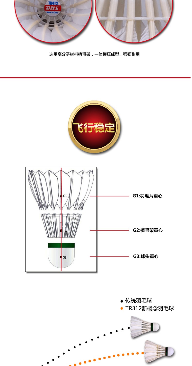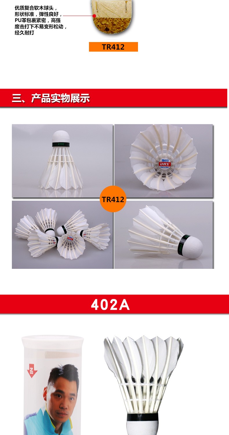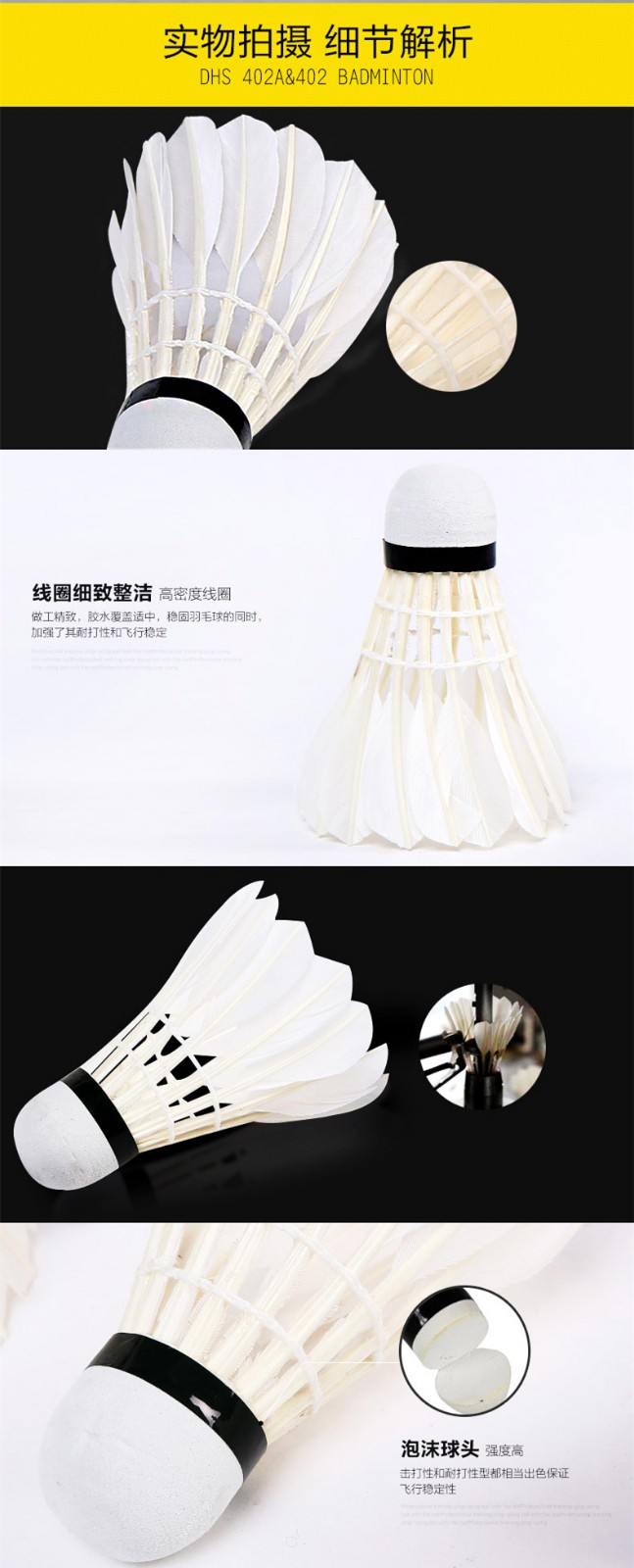 - 商品名称:红双喜羽毛球 正品耐打DHS娱乐/训练/比赛用球 稳定耐打 品质提升 402A羽毛球(6只装*1桶)