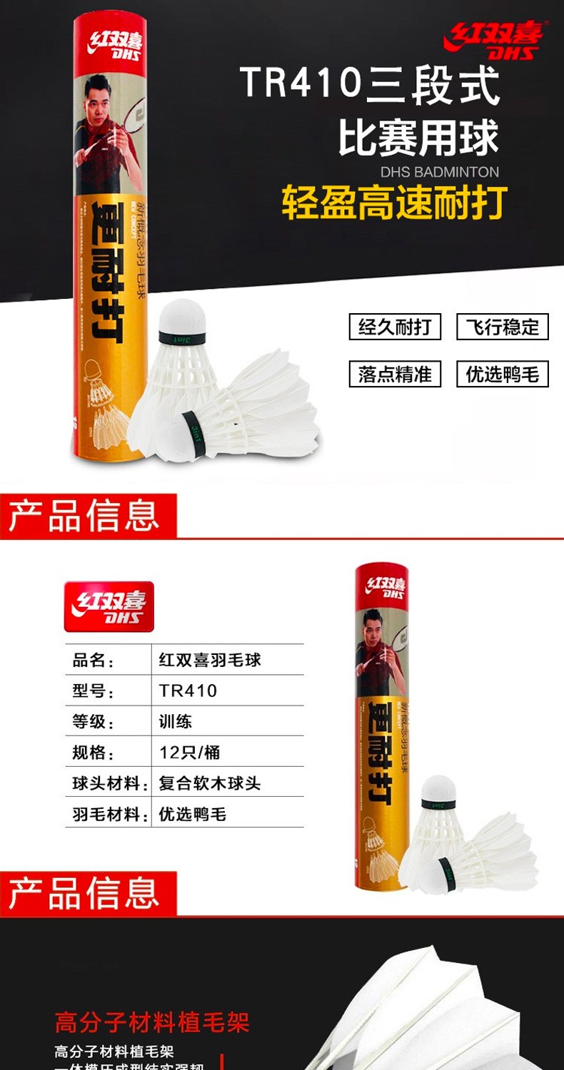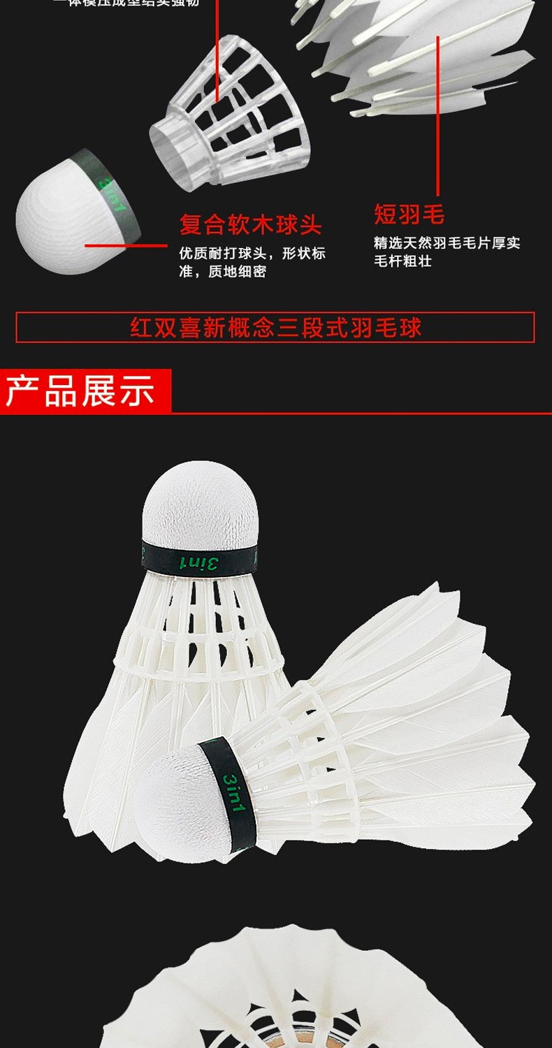 - 商品名称:红双喜羽毛球耐打王鹅毛球训练比赛羽毛球 03羽毛球3只装3桶