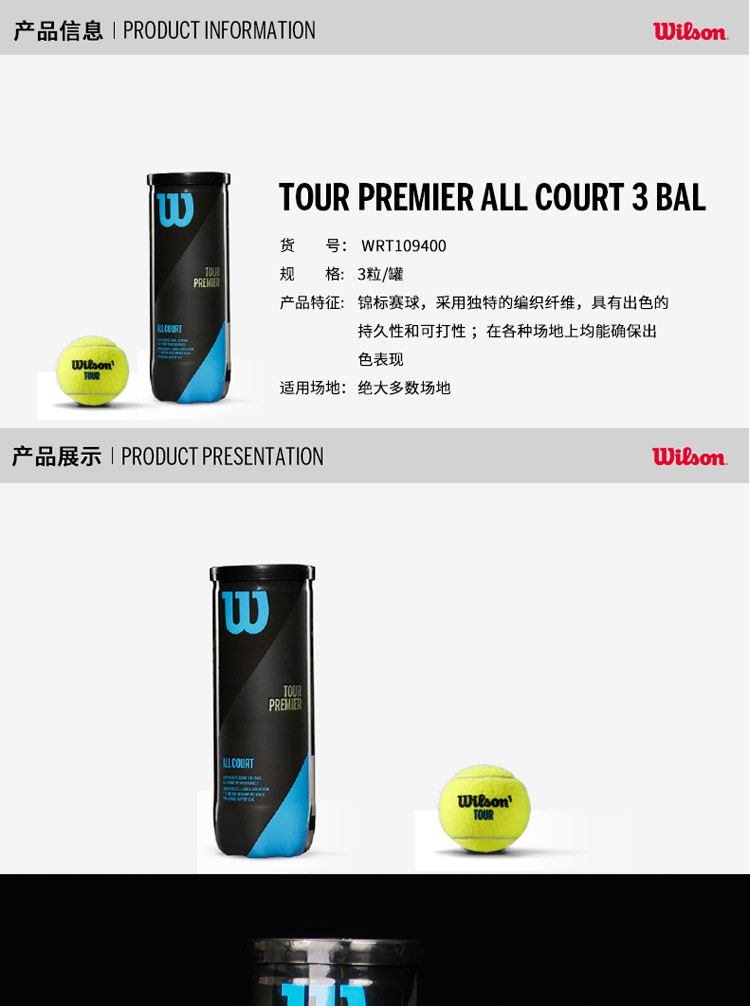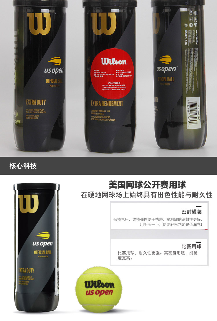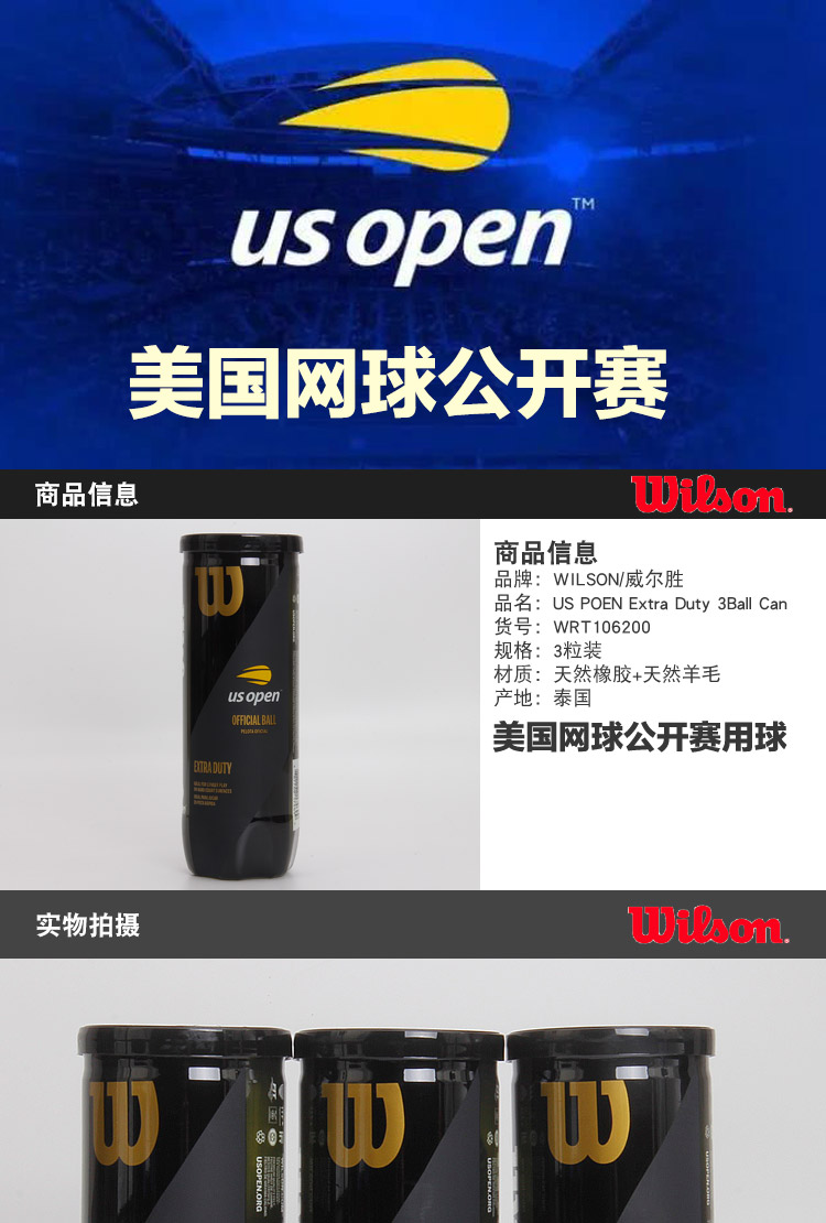 商品名称:Wilson 威尔胜Us Open美国公开赛比赛网球澳网比赛用球 法网WRT126400一桶装
