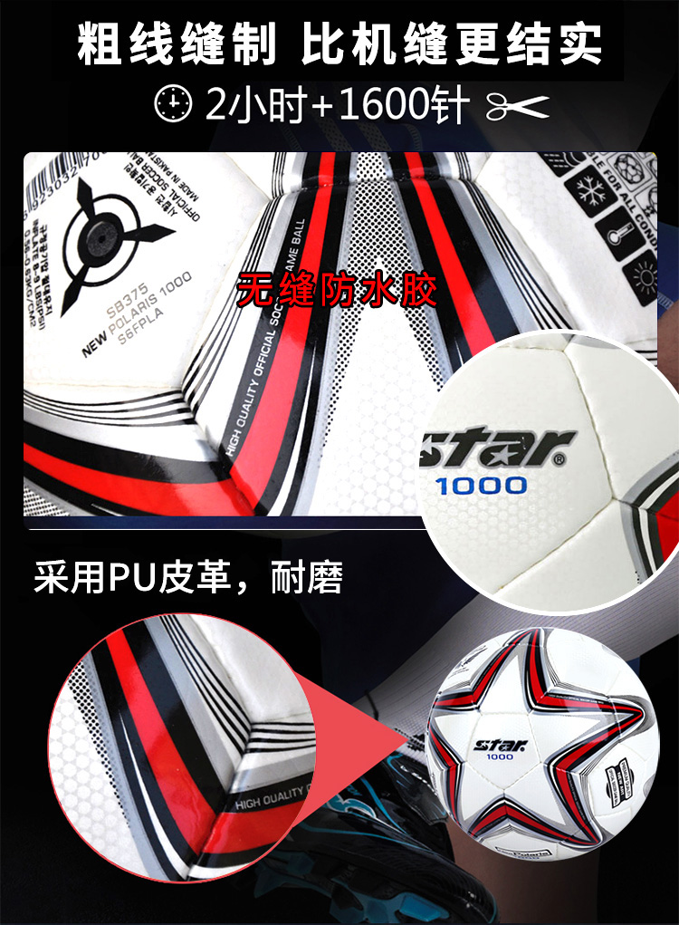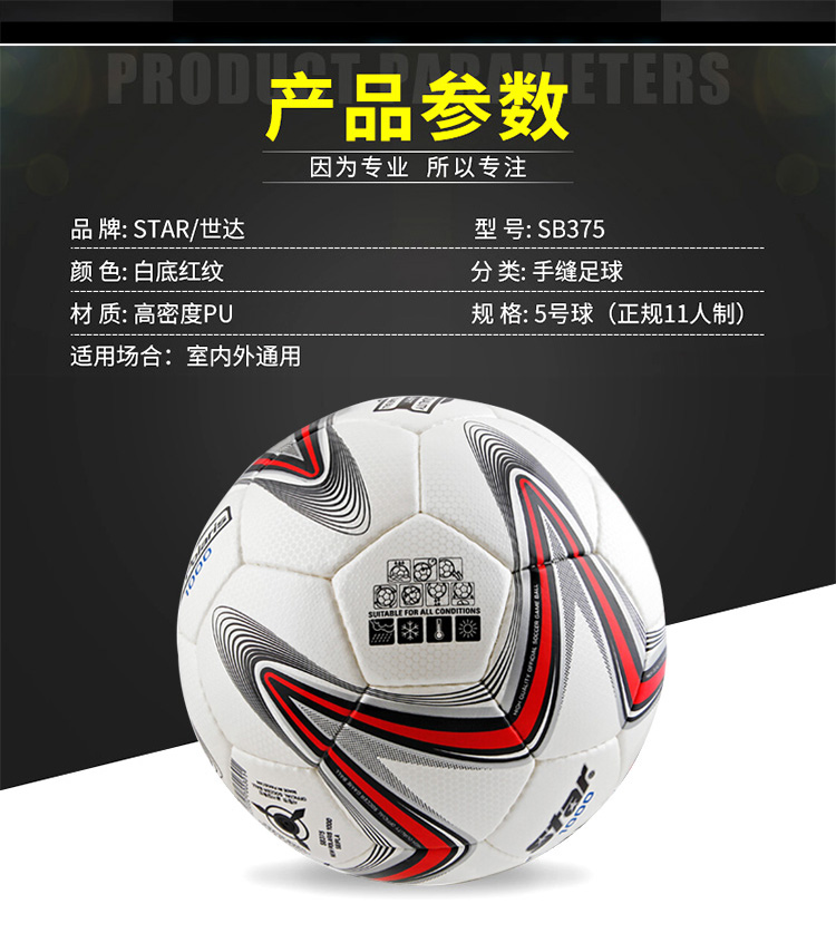 - 商品名称:世达(star) 5号 超纤革 手缝 足球 足球联赛指定用球 SB375