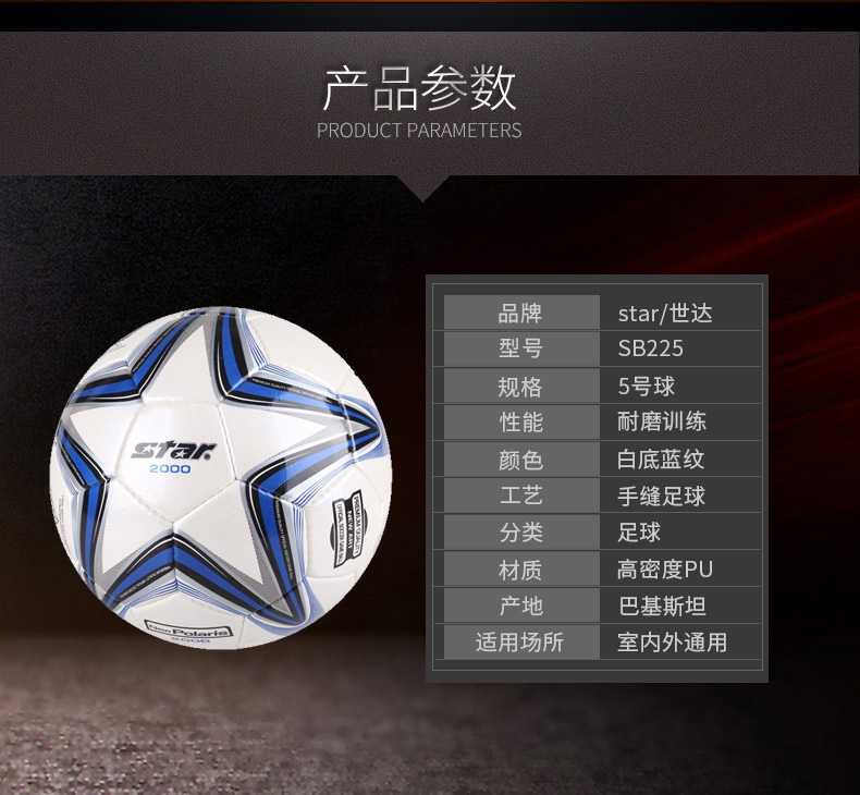 - 商品名称:世达(star) 超纤革 手缝 训练比赛用 5号足球 SB225P