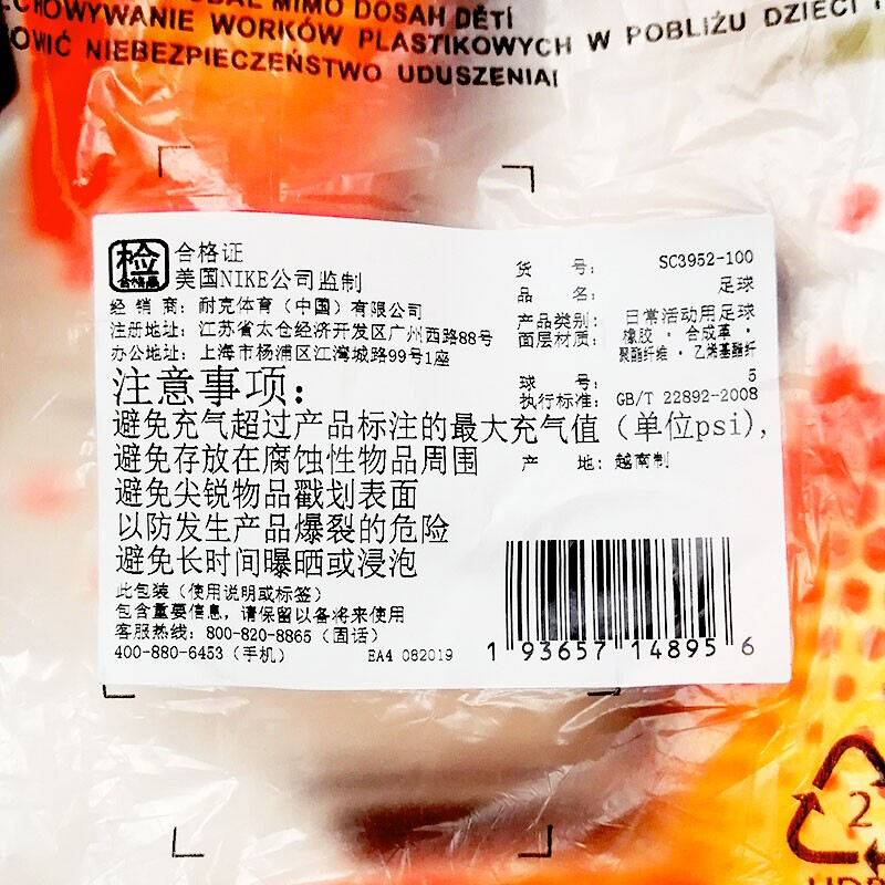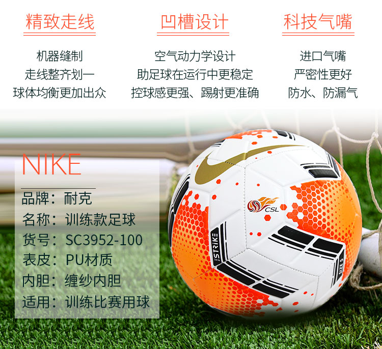 - 商品名称:耐克(Nike)中超足球联赛训练比赛用球 成人 青少年5号球SC3952-100